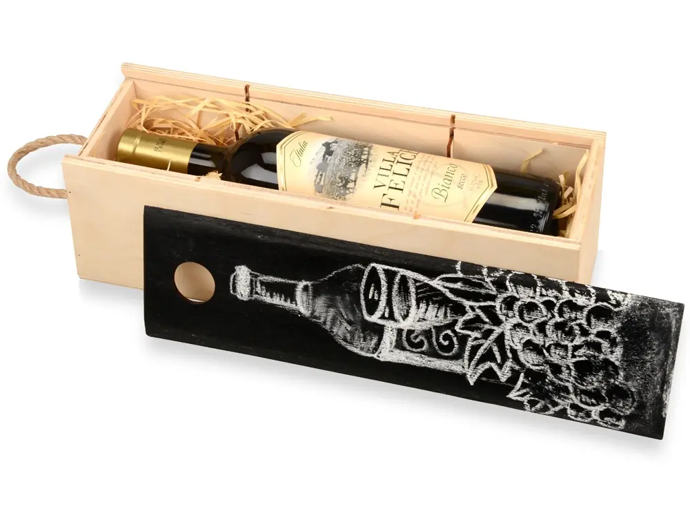 Пенал на 1 бутылку с грифельной крышкой, натуральный
