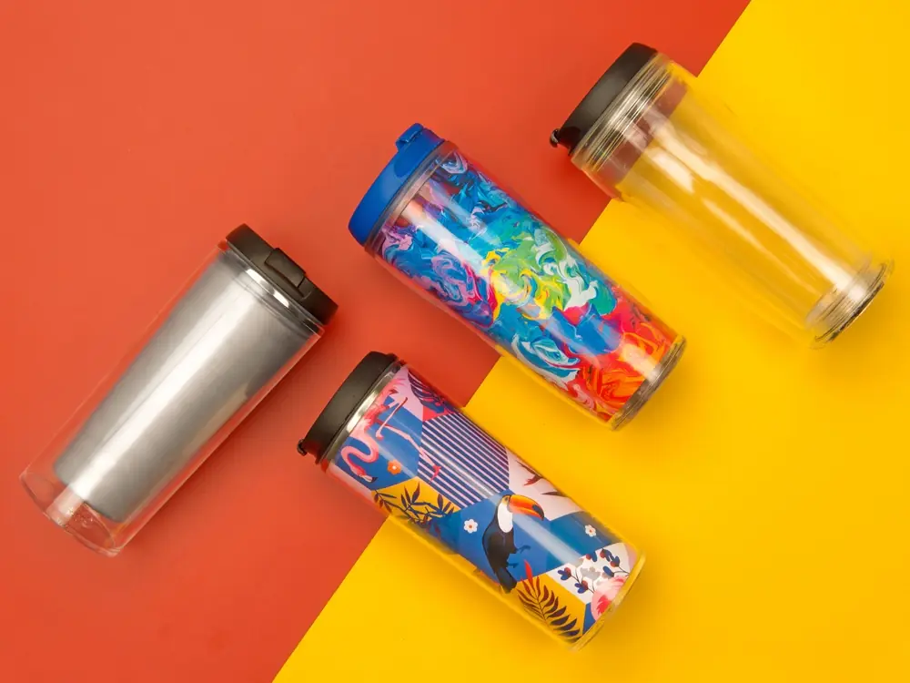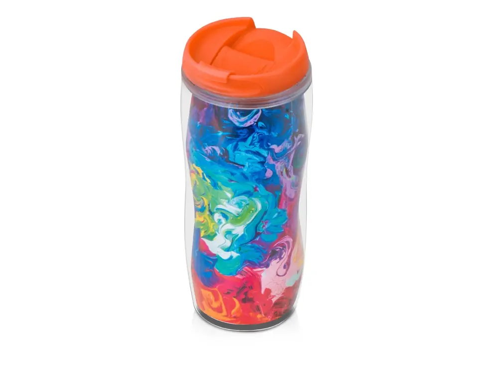 Термокружка Mony 400мл, под цифровую печать, прозрачный/оранжевый