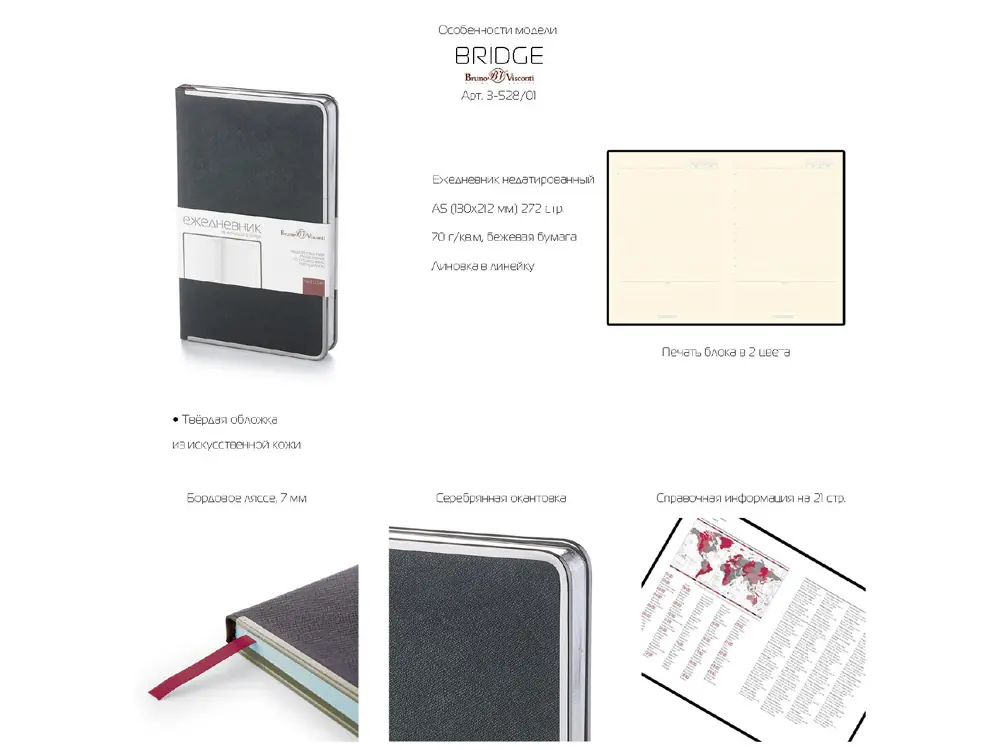 Ежедневник А5 недатированный Bridge, синий/серебристый