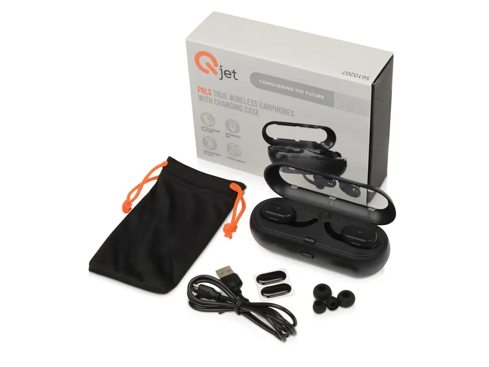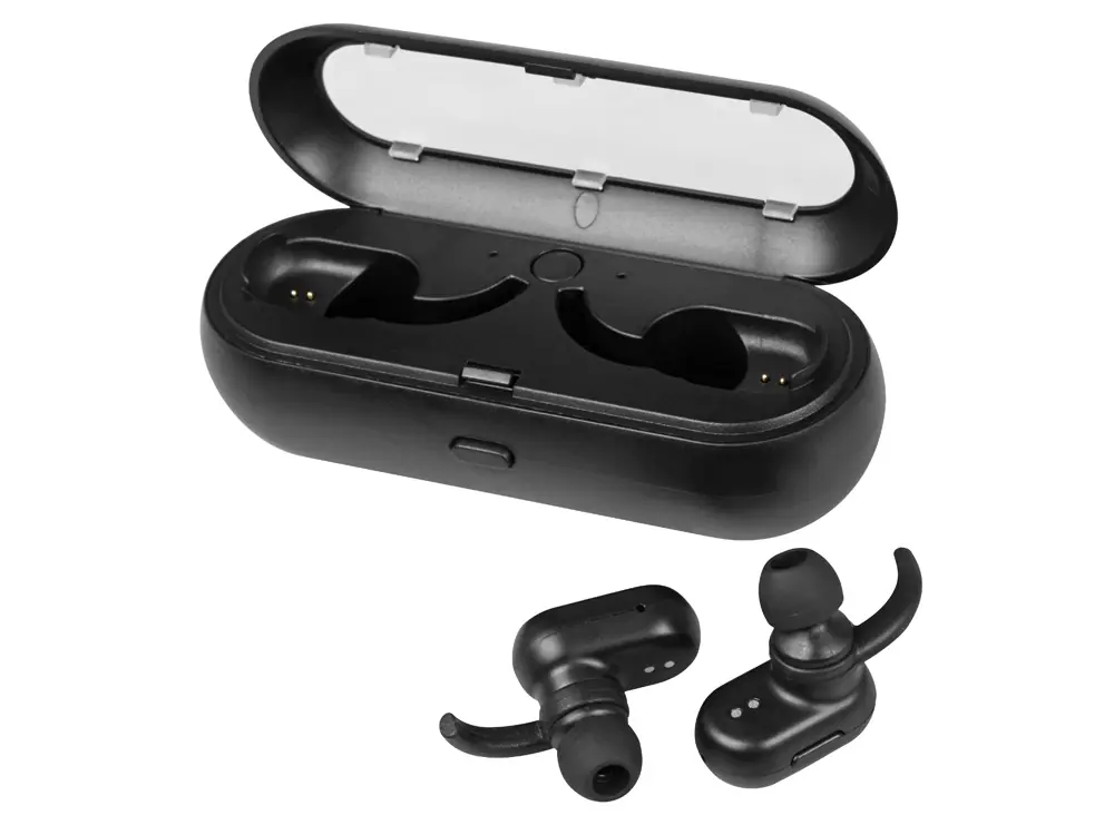- Комплектность 2 беспроводных наушника, зарядная станция, чехол, кабель micro-USB, амбушюры- 3 пары, инструкция