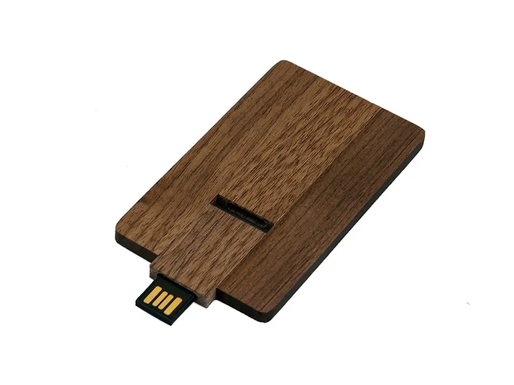 Флешка в виде деревянной карточки с выдвижным механизмом, 16 Гб, коричневый