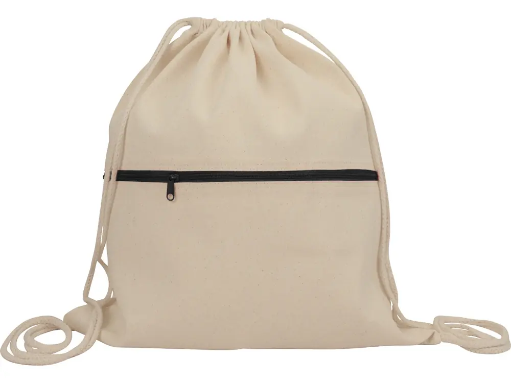 Рюкзак-мешок хлопковый Lark с цветной молнией, натуральный/черный