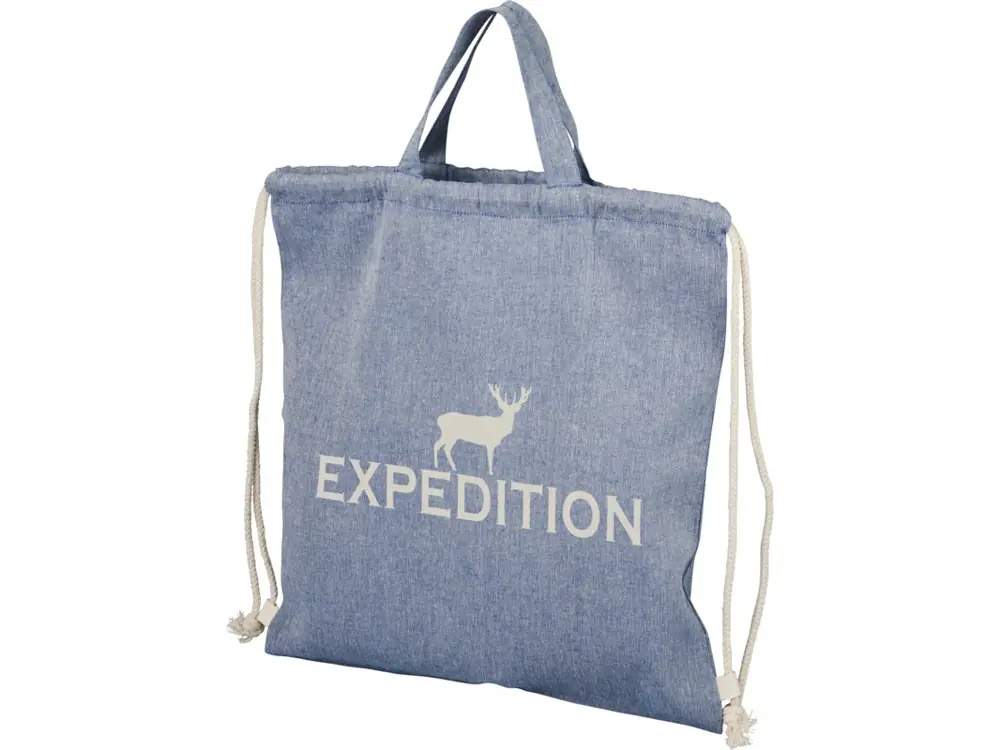 Рюкзак со шнурком Pheebs из 150 г/м2 переработанного хлопка, синий меланж