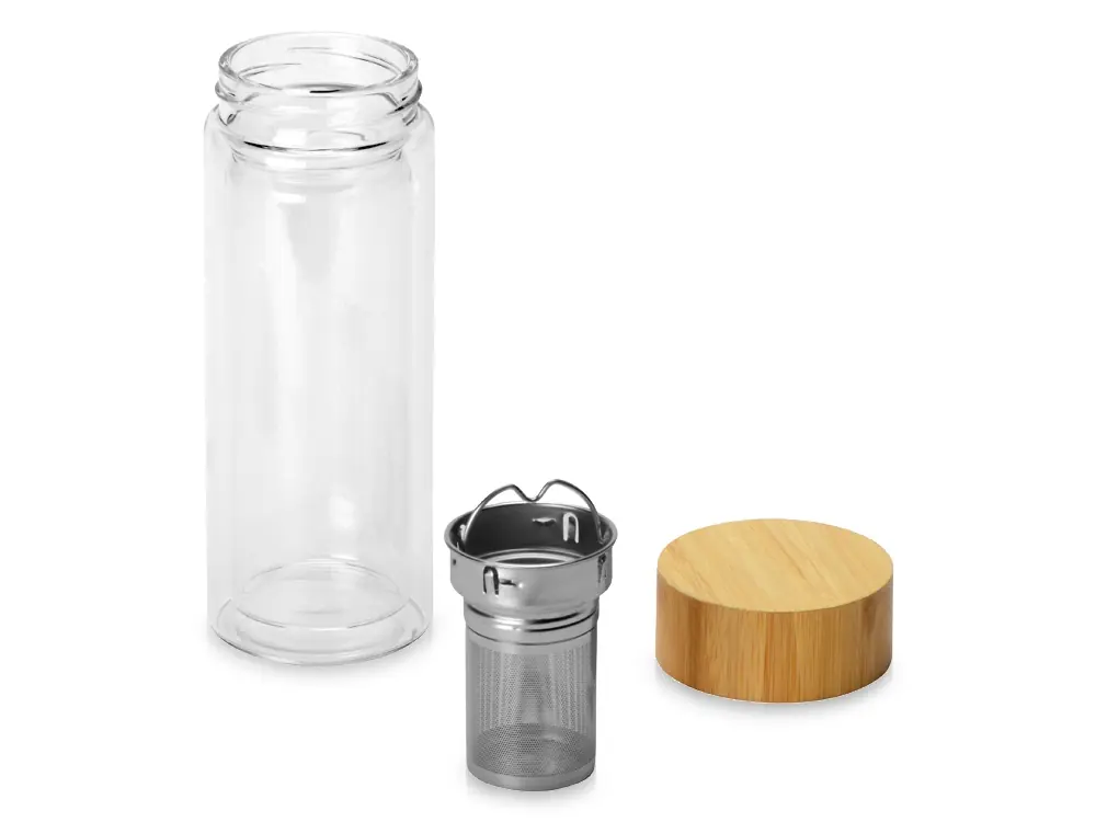 Стеклянный термос с двойными стенками и ситечком 320 мл Badachu, прозрачный