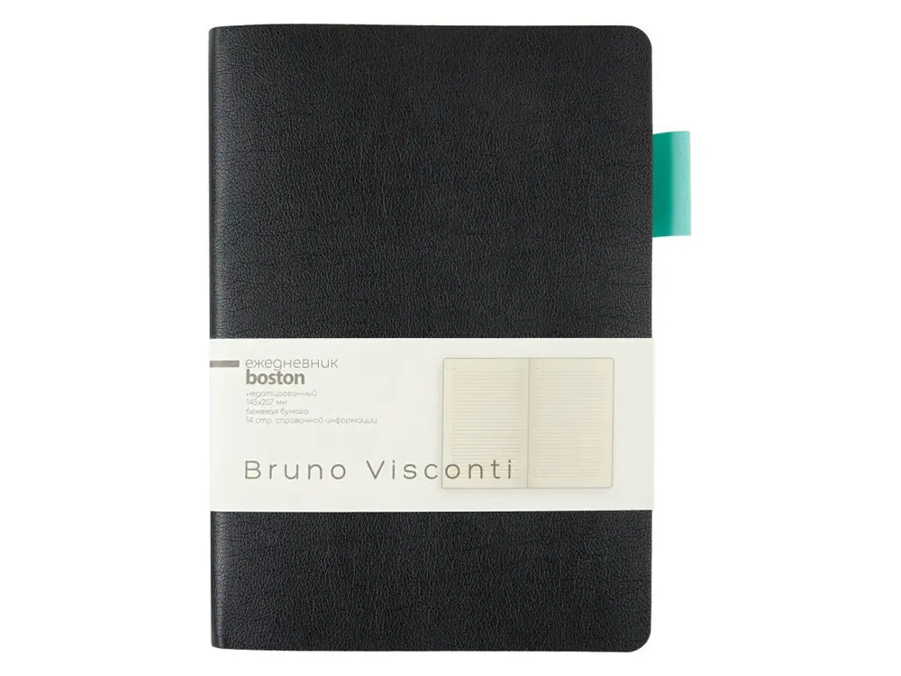 Ежедневник недатированный А5 Boston, черный (бирюзовый обрез)