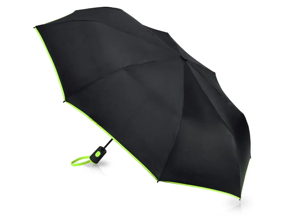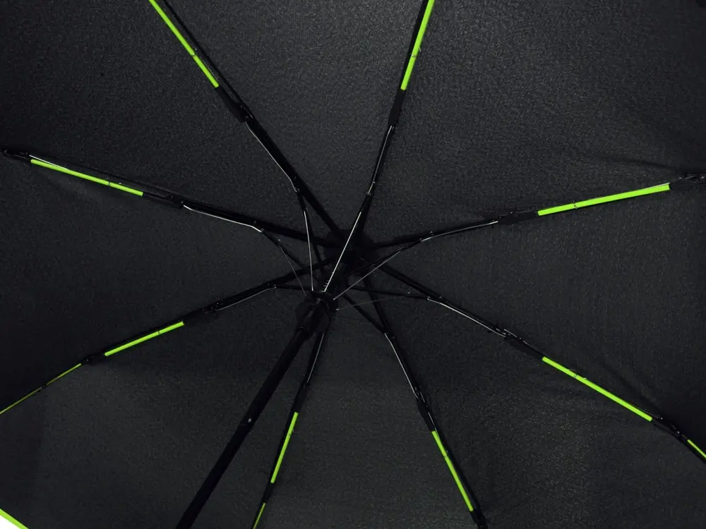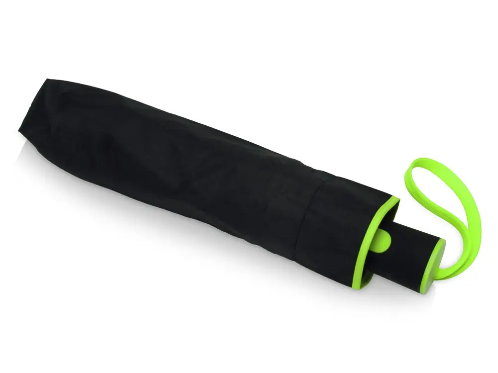 Зонт-полуавтомат складной Motley с цветными спицами, черный/зеленое яблоко