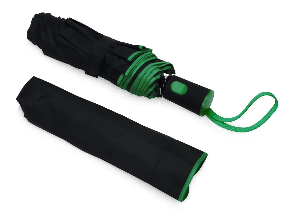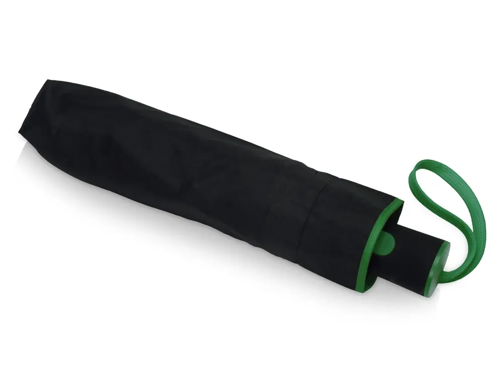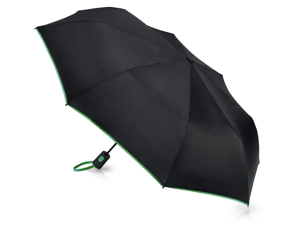 Зонт-полуавтомат складной Motley с цветными спицами, черный/зеленый