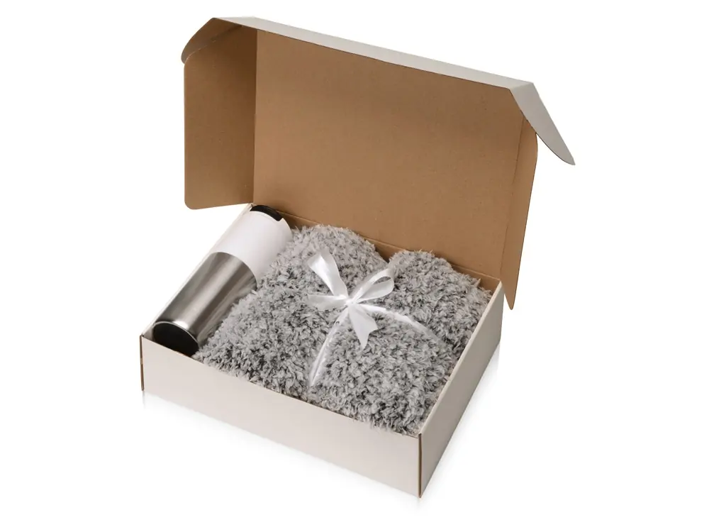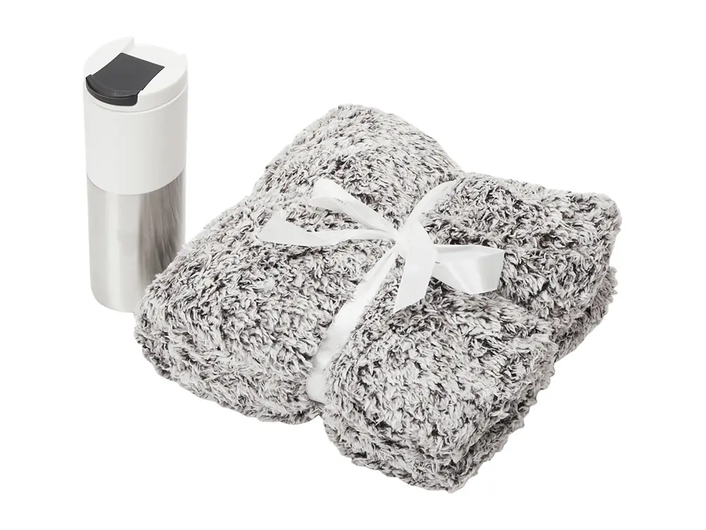 - Цвет товара плед- бело-черный, термокружка- белый/серебристый