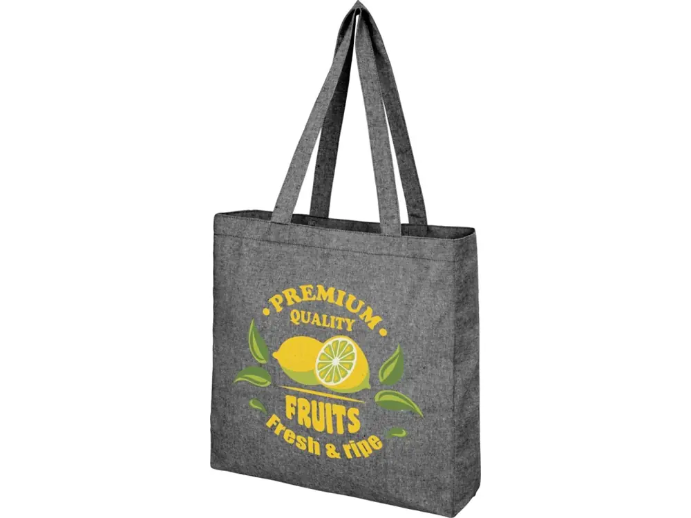 Эко-сумка Pheebs с клинчиком, изготовленная из переработанного хлопка, плотность 210 г/м2, черный мел