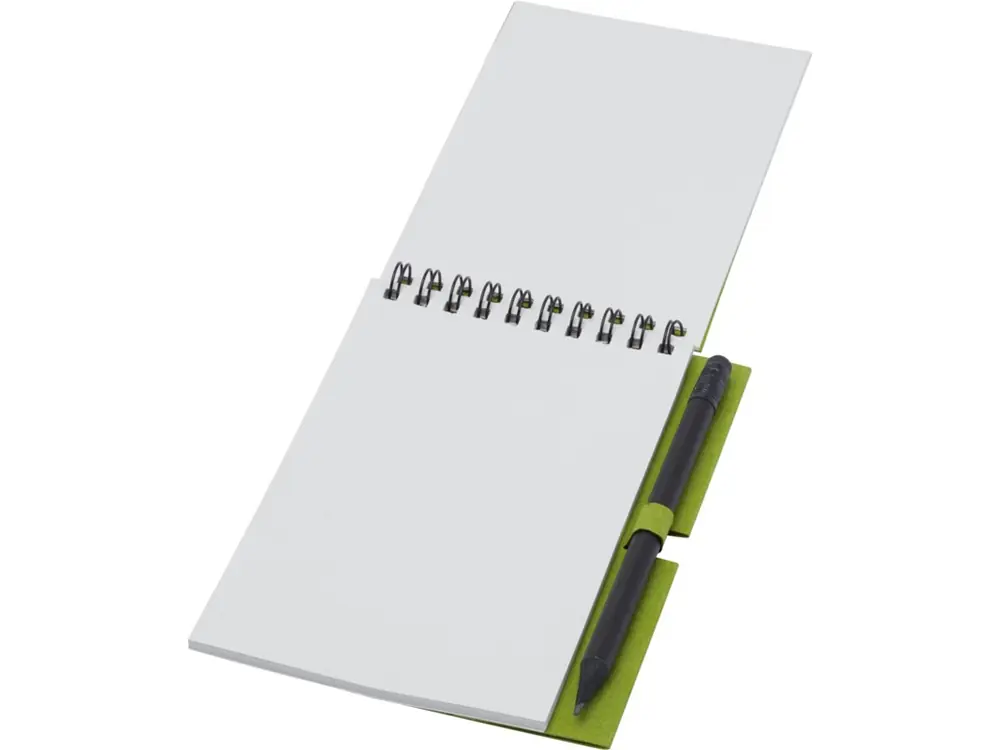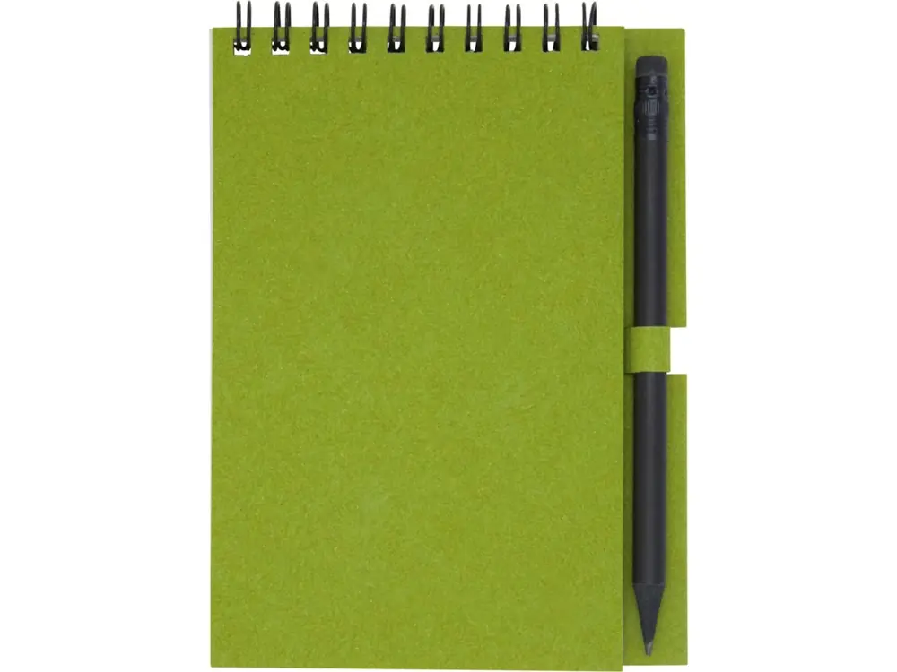 Блокнот Luciano Eco на пружине, с карандашом, маленький, зеленый