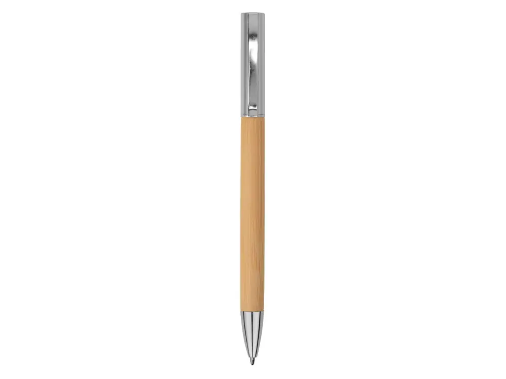Ручка бамбуковая шариковая Saga, хром/бамбук