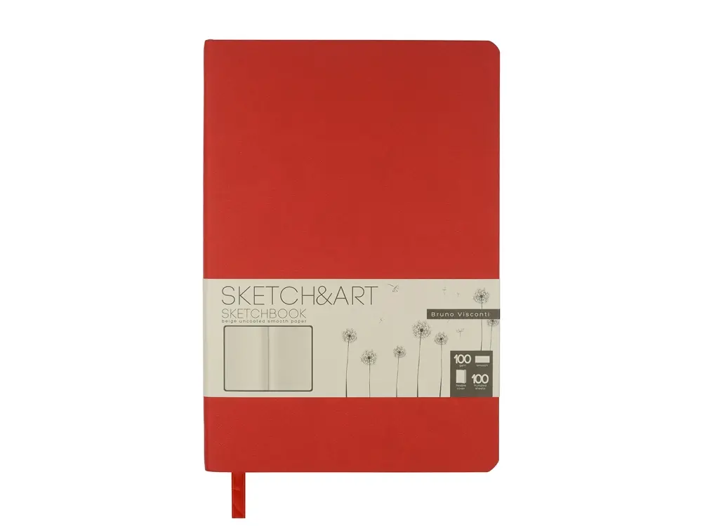 Скетчбук Sketch & Art в мягком переплете 140х210 мм, 100 л. бежевой бумаги 100 гр., красный