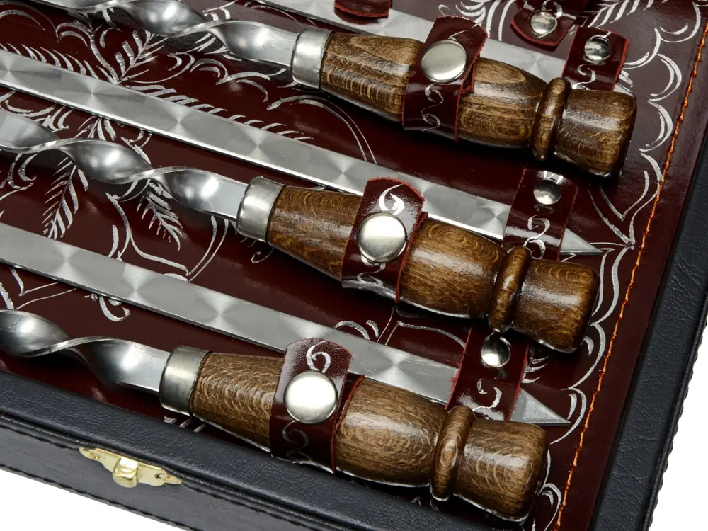• Материал товара нержавеющая сталь, дерево. сплит-кожа/натуральная кожа