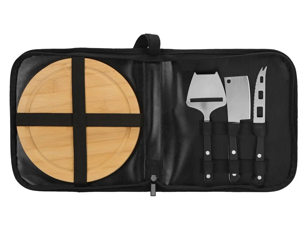 - Комплектность чехол, разделочная доска, нож-топорик, нож для сыра с воздушным карманом, лопатка для сыра