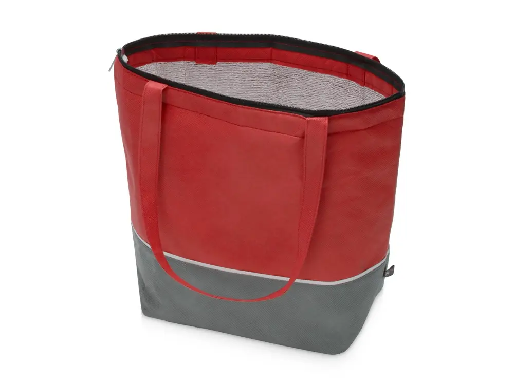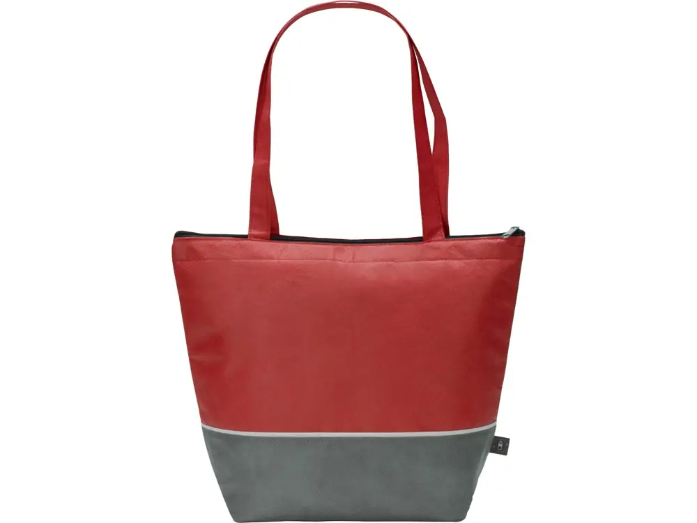 Сумка-холодильник Reviver с длинными ручками из нетканого переработанного материала RPET, красный/серый