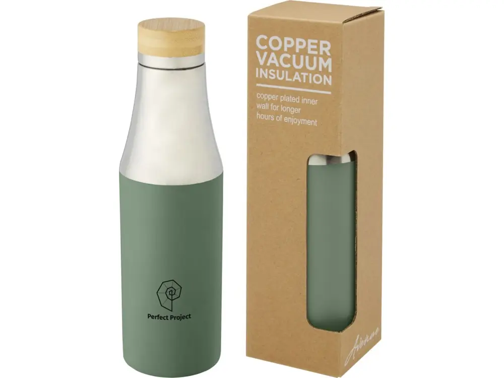Hulan Бутылка объемом 540 мл с вакуумной изоляцией из меди и бамбуковой крышкой, зеленый яркий