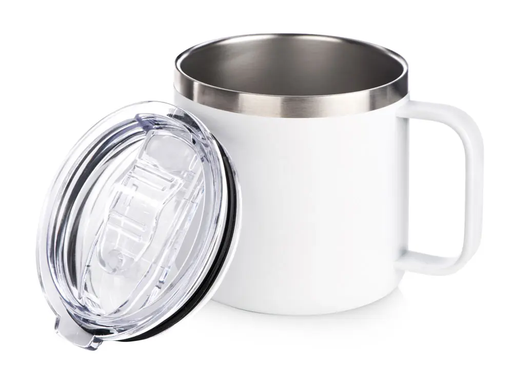 Кружка стальная Alaska с крышкой слайдером, powder coating, белый