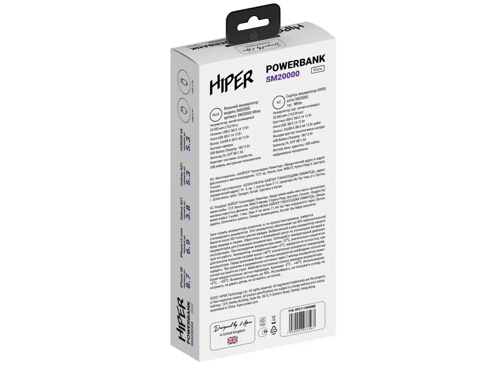 Портативный внешний аккумулятор SM20000 White