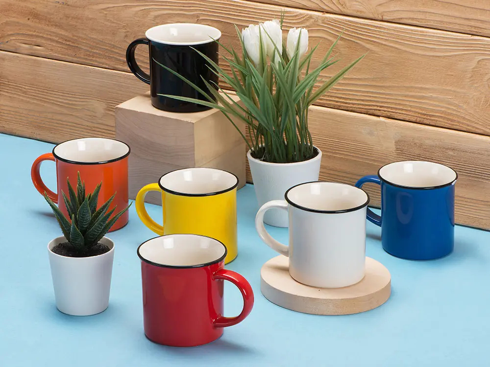 Кружка Countryside S с черным ободком, белая внутри, цветная снаружи, белый