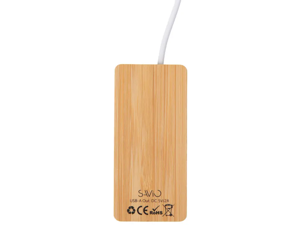 USB хаб с подсветкой лого Reedia S5, 3*USB, 1*Type C, бамбук, черный