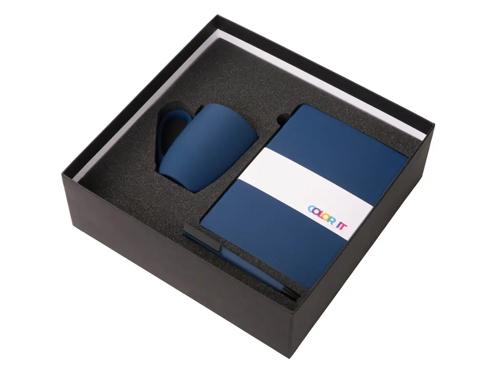 Подарочный набор c блокнотом C2, ручкой и кружкой, темно-синий