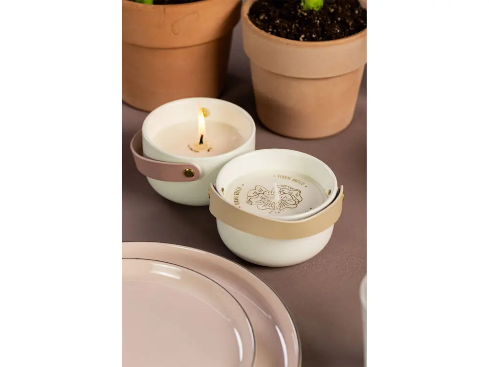 - Материал товара высокотемпературный фарфор, металлическая крышка, ручка ПВХ, соевый воск