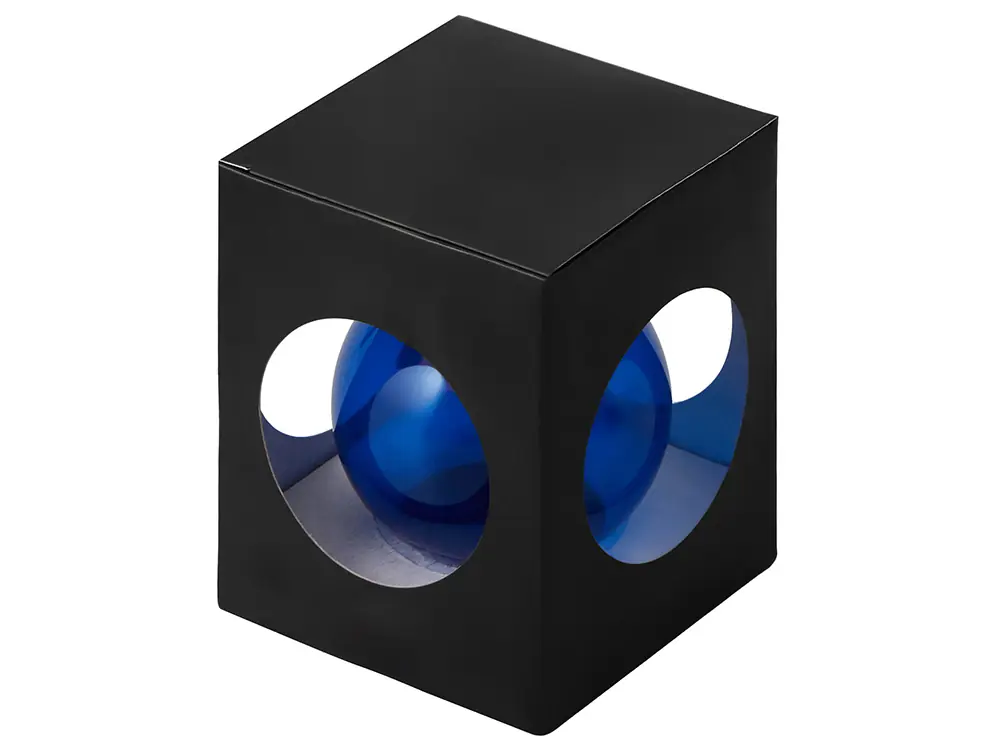 Стеклянный елочный шар Christmas bauble, синий прозрачный, с серебристым колпачком в черной коробке