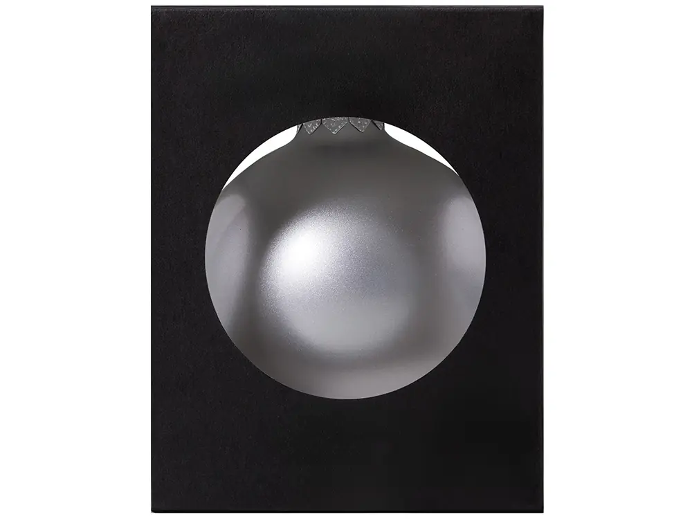 Стеклянный елочный шар Christmas bauble, серебро, металлик, с серебристым колпачком в черной коробке