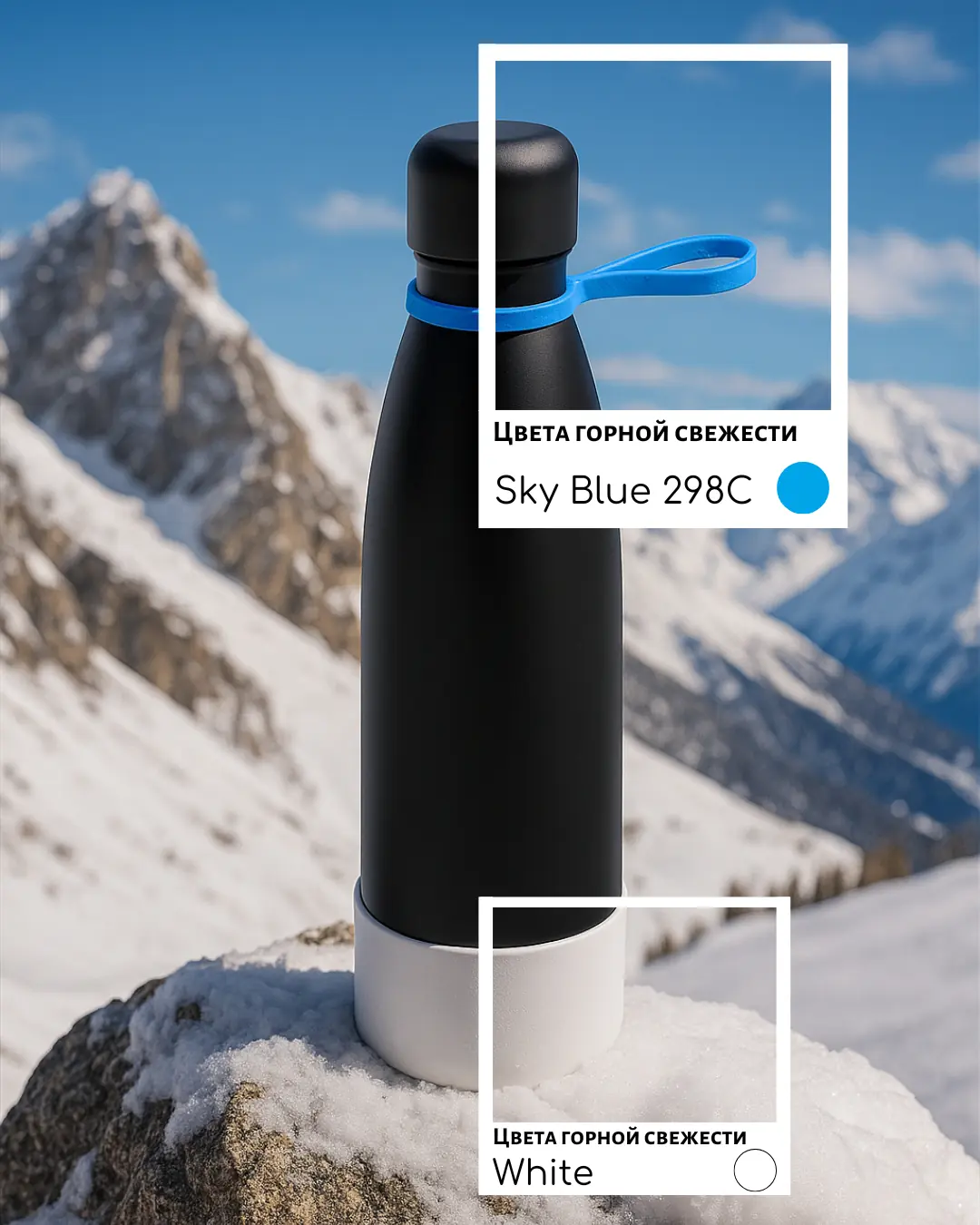 Термобутылка герметичная вакуумная Olivia To Go, чёрный/голубой/белый