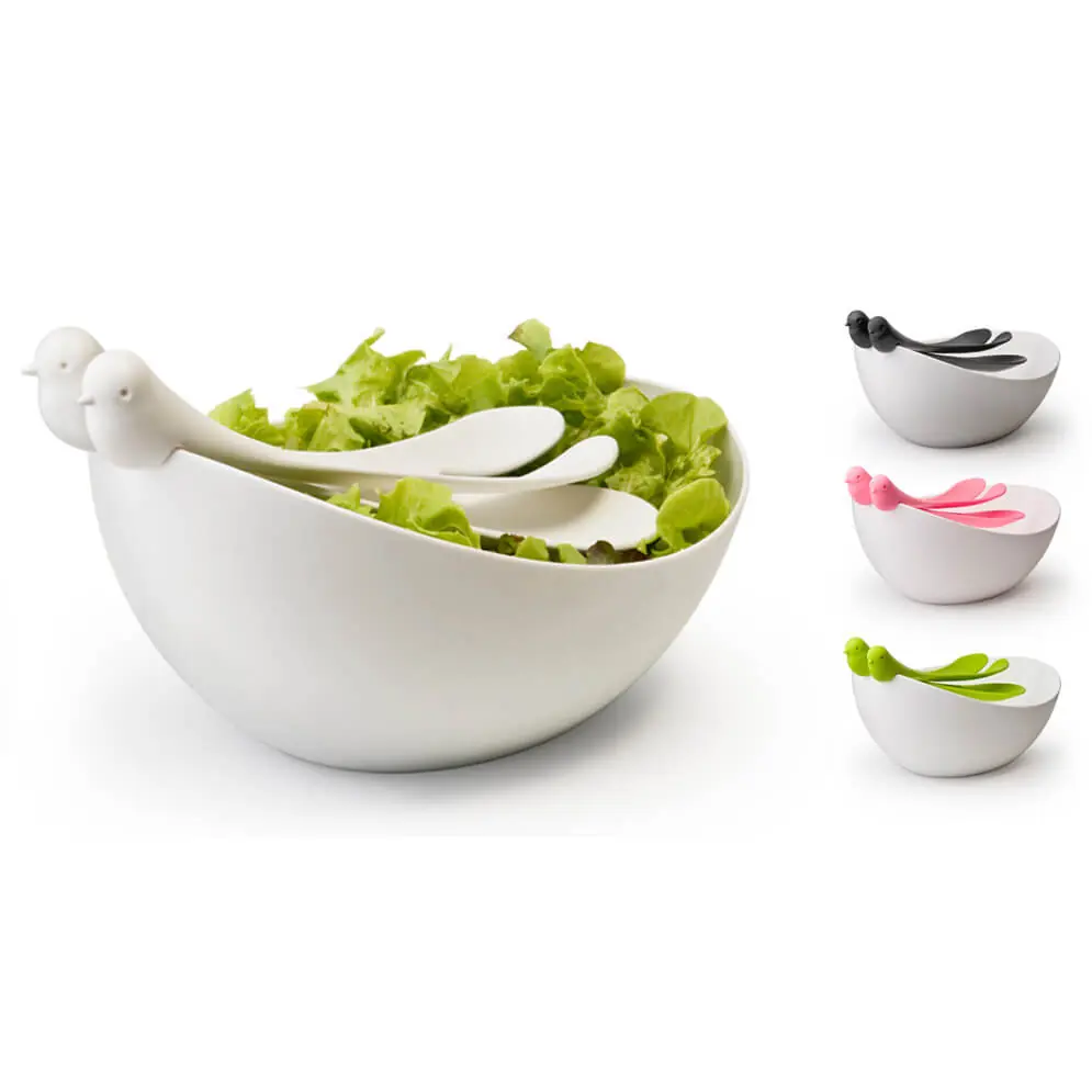 САЛАТНИЦА С ЛОЖКАМИ SPARROW, белая/зеленая