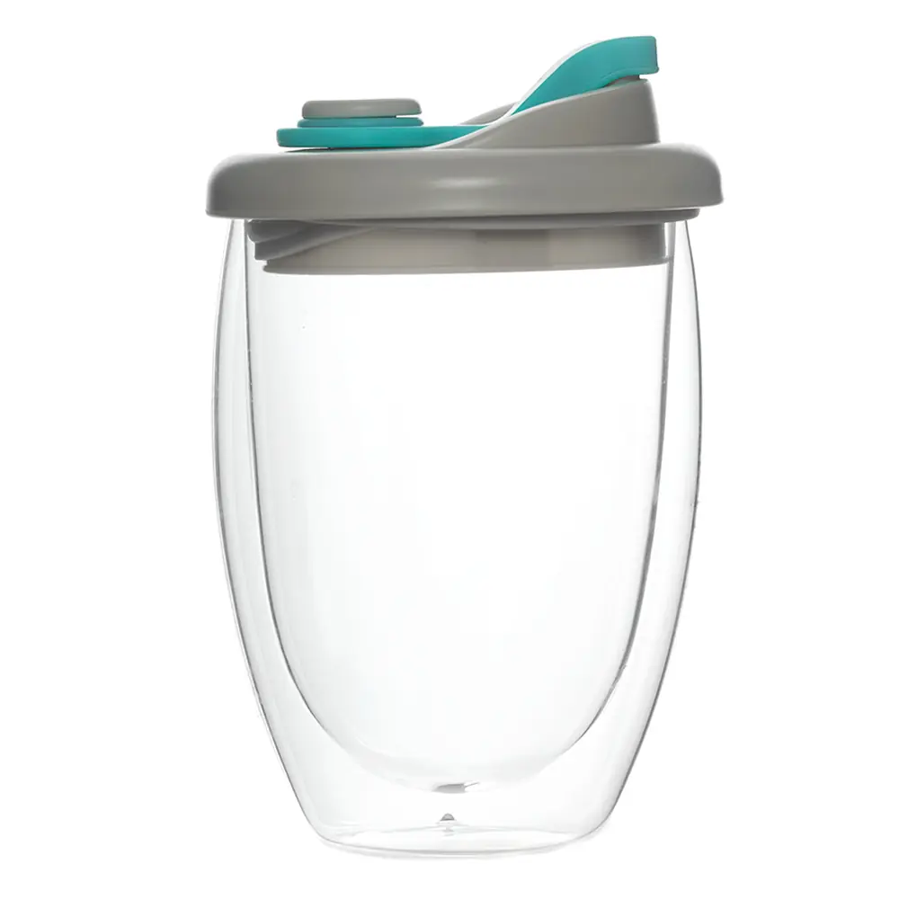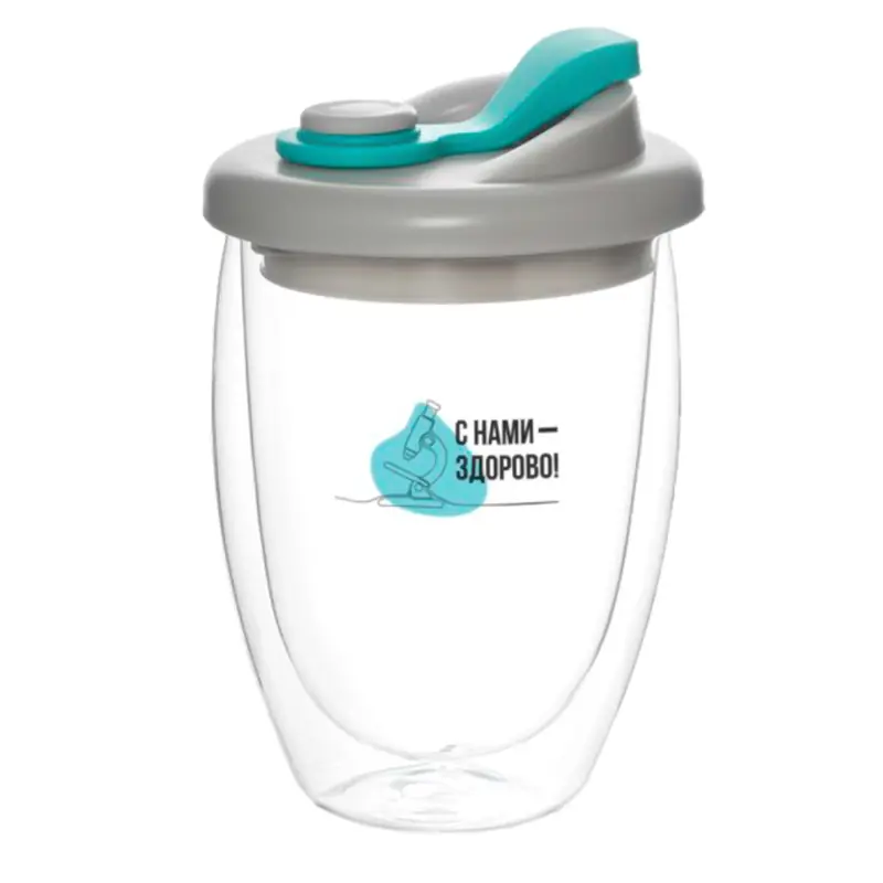 Стакан стеклянный Lotos с двойными стенками и крышкой, голубой