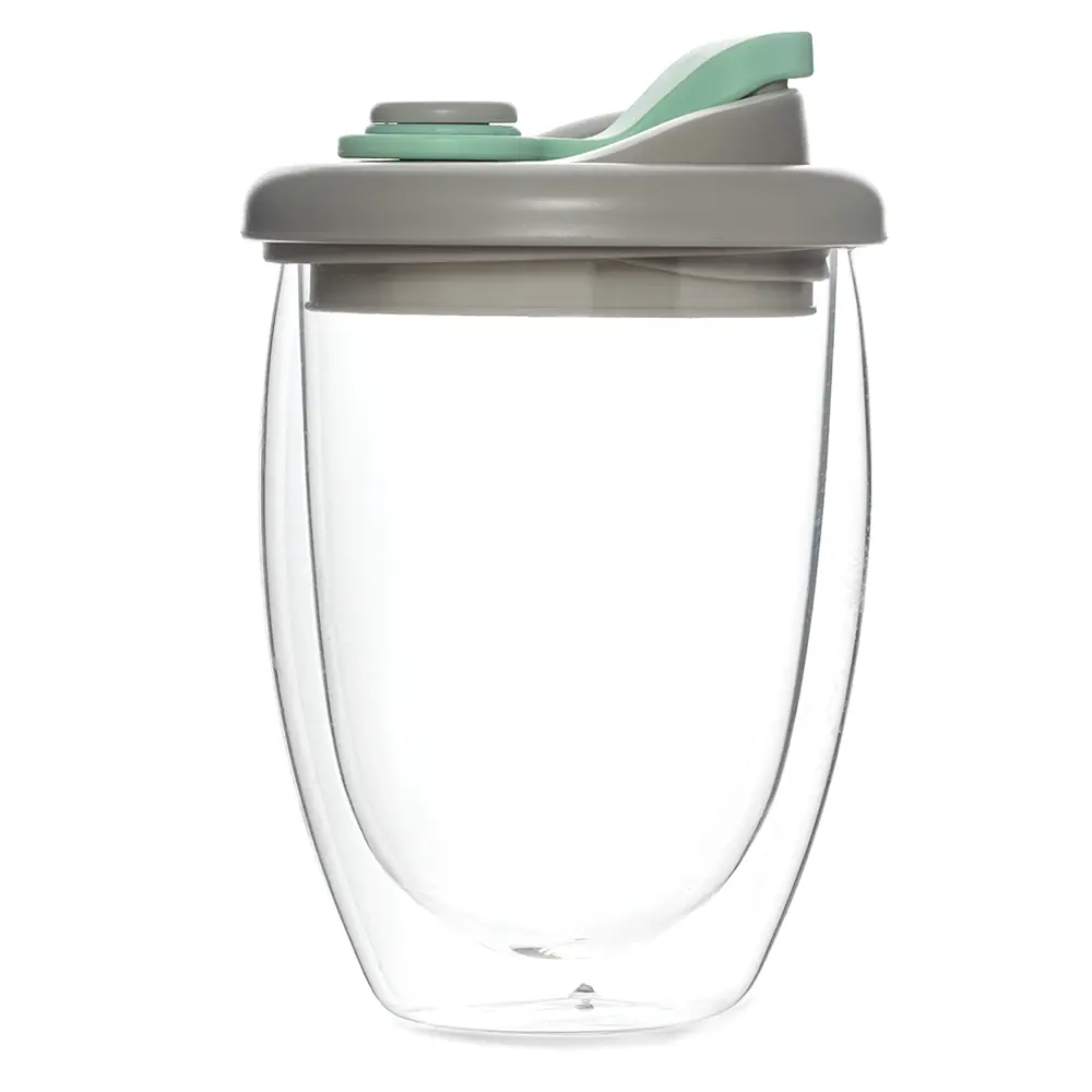 Стакан стеклянный Lotos с двойными стенками и крышкой, бирюзовый