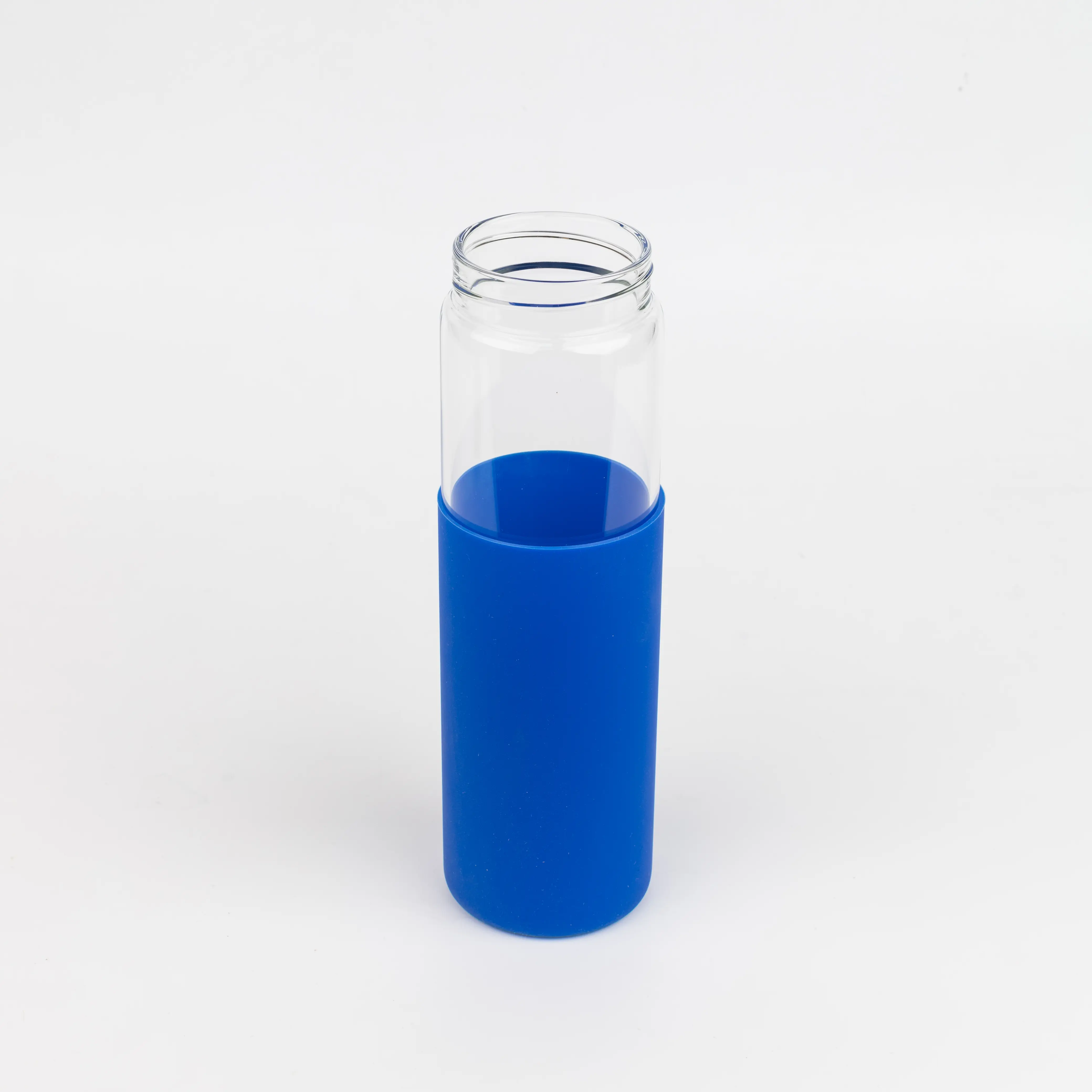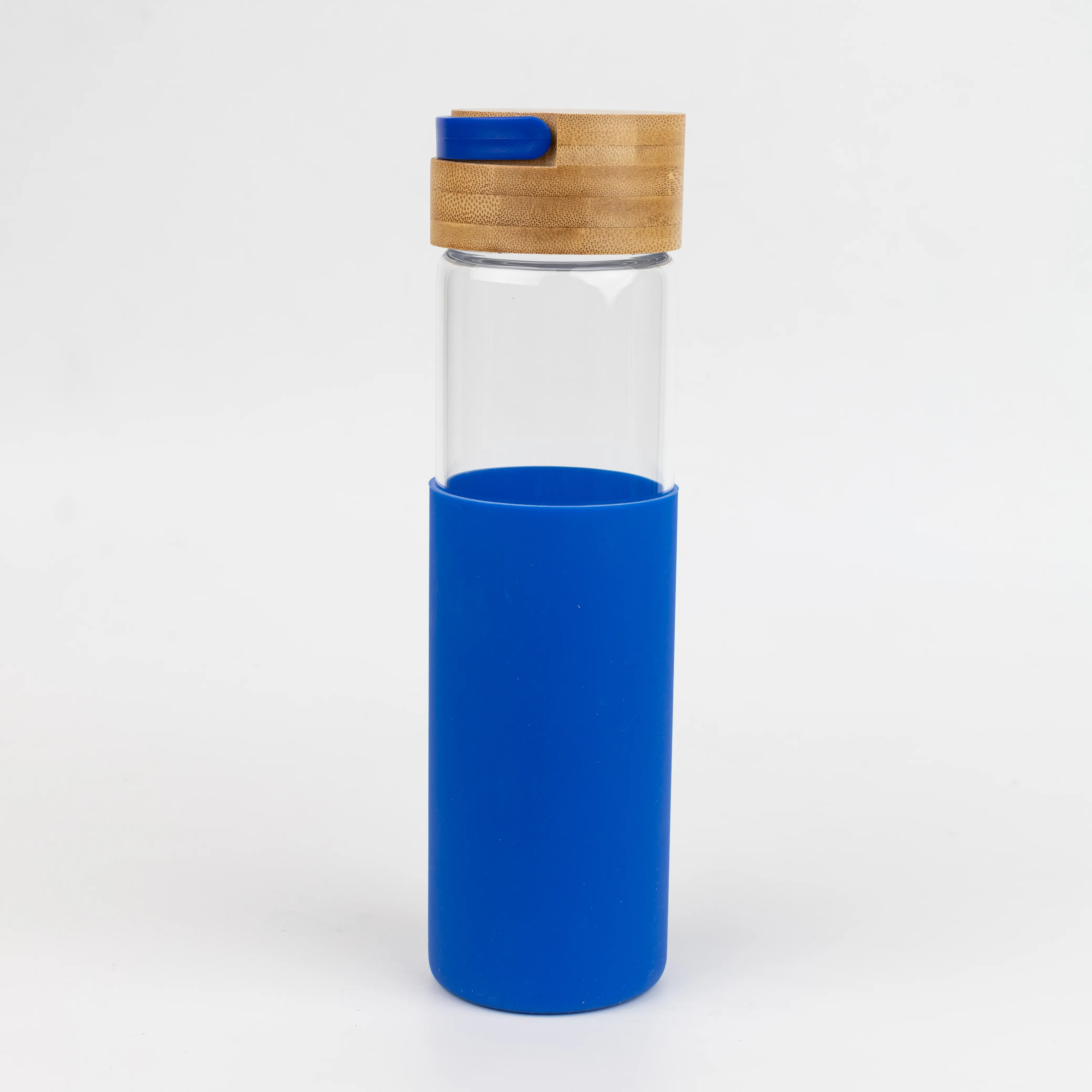 Бутылка стеклянная с силиконовой манжетой и бамбуковой крышкой Glass, синяя