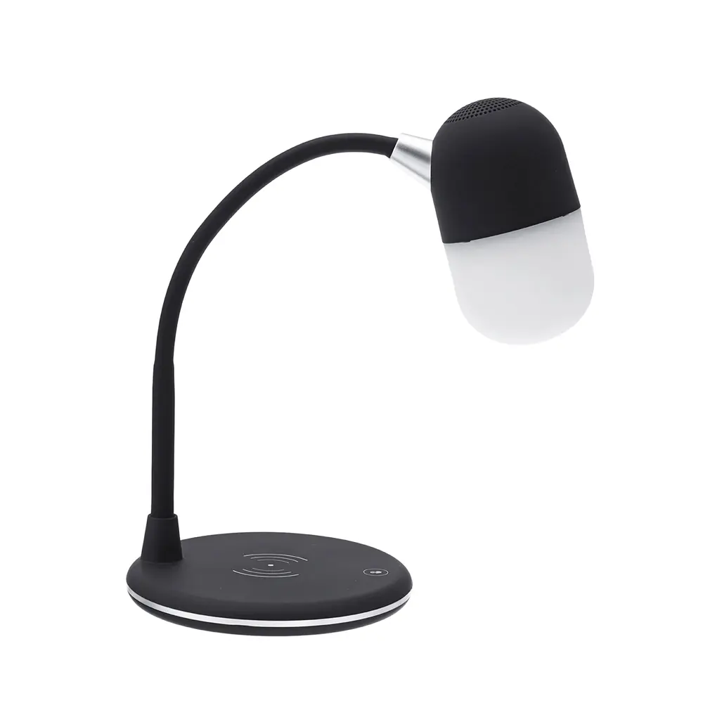 Лампа с колонкой и беспроводной зарядкой Alladin, черная