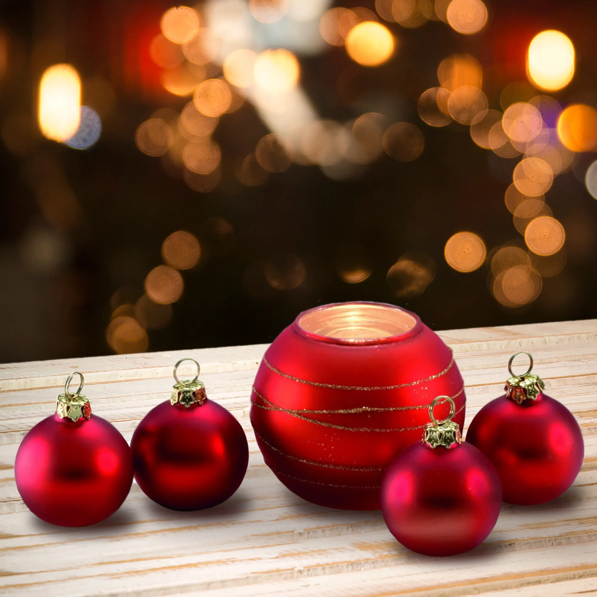 Набор: 4 ёлочных игрушки и подсвечник / красный