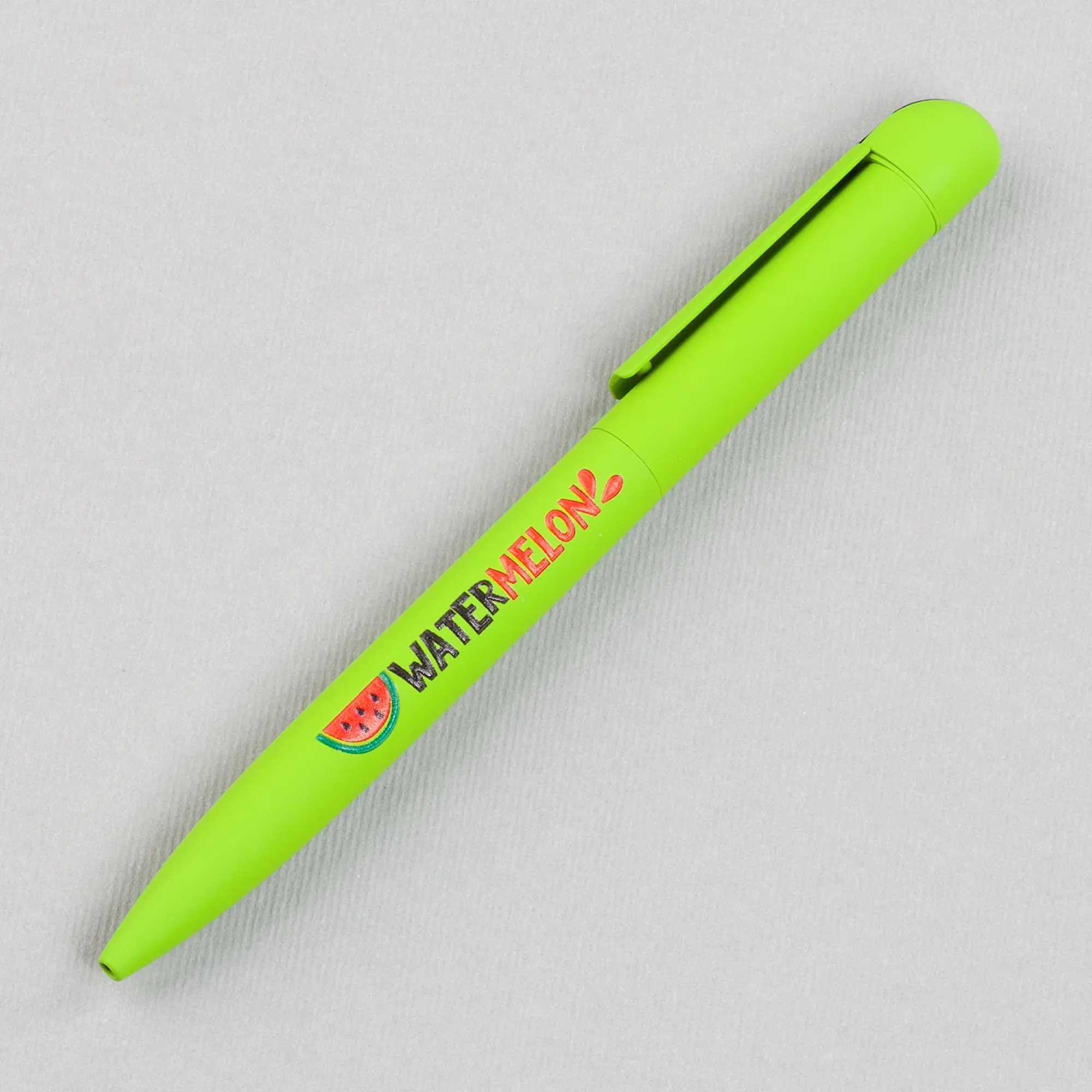 - Под клипом ручки справа UF:Объемная УФ печать на плоскости, Р: Тампопечать по силиконовому и прорезиненному покрытию
