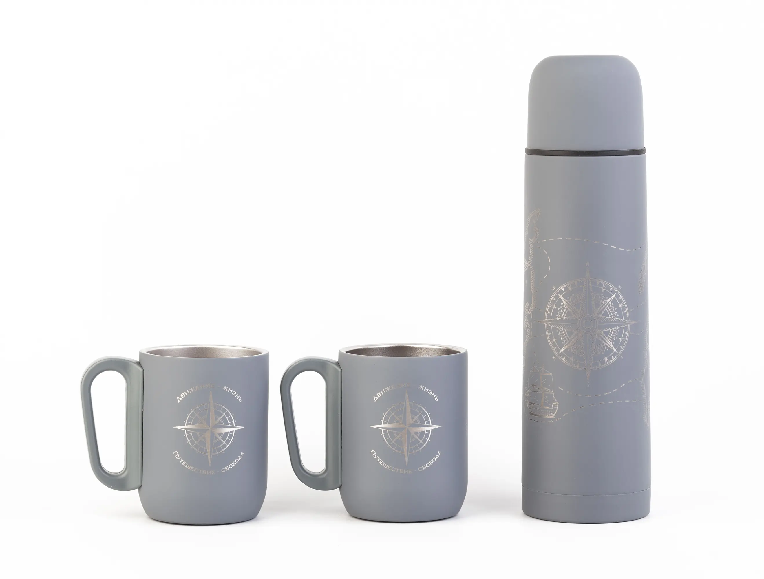 Набор "Гейзер" (термос, 2 кружки), покрытие soft touch / серый