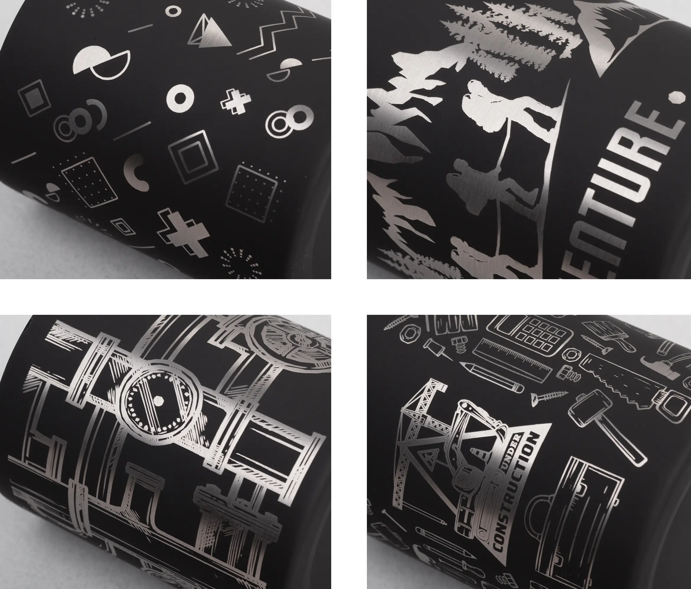 • Корпус кружки середина LA:Лазерная гравировка по окружности, Р: Тампопечать по силиконовому и прорезиненному покрытию