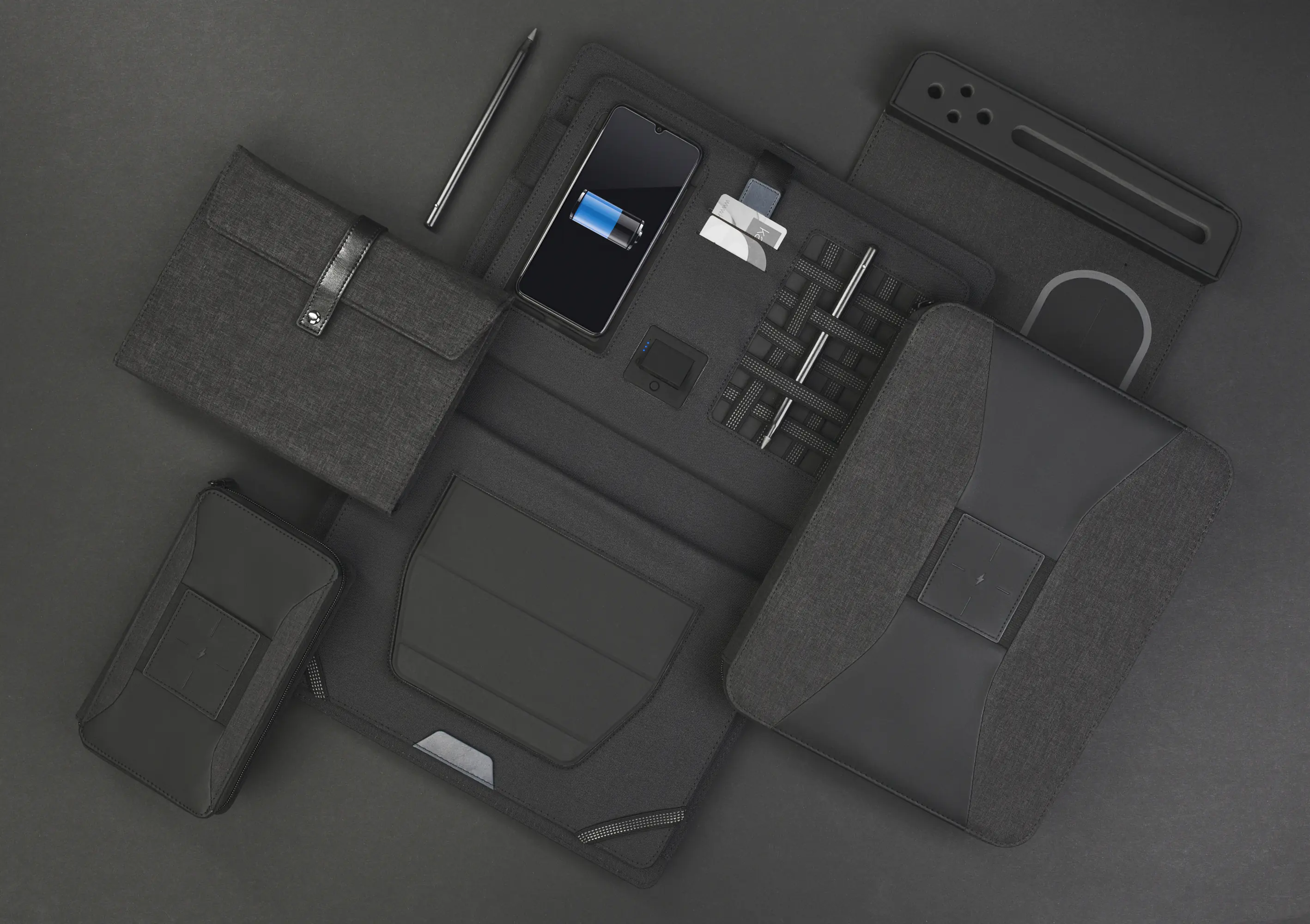 Мобильный офис с беспроводным зарядным устройством 5000 mAh / серый с черным