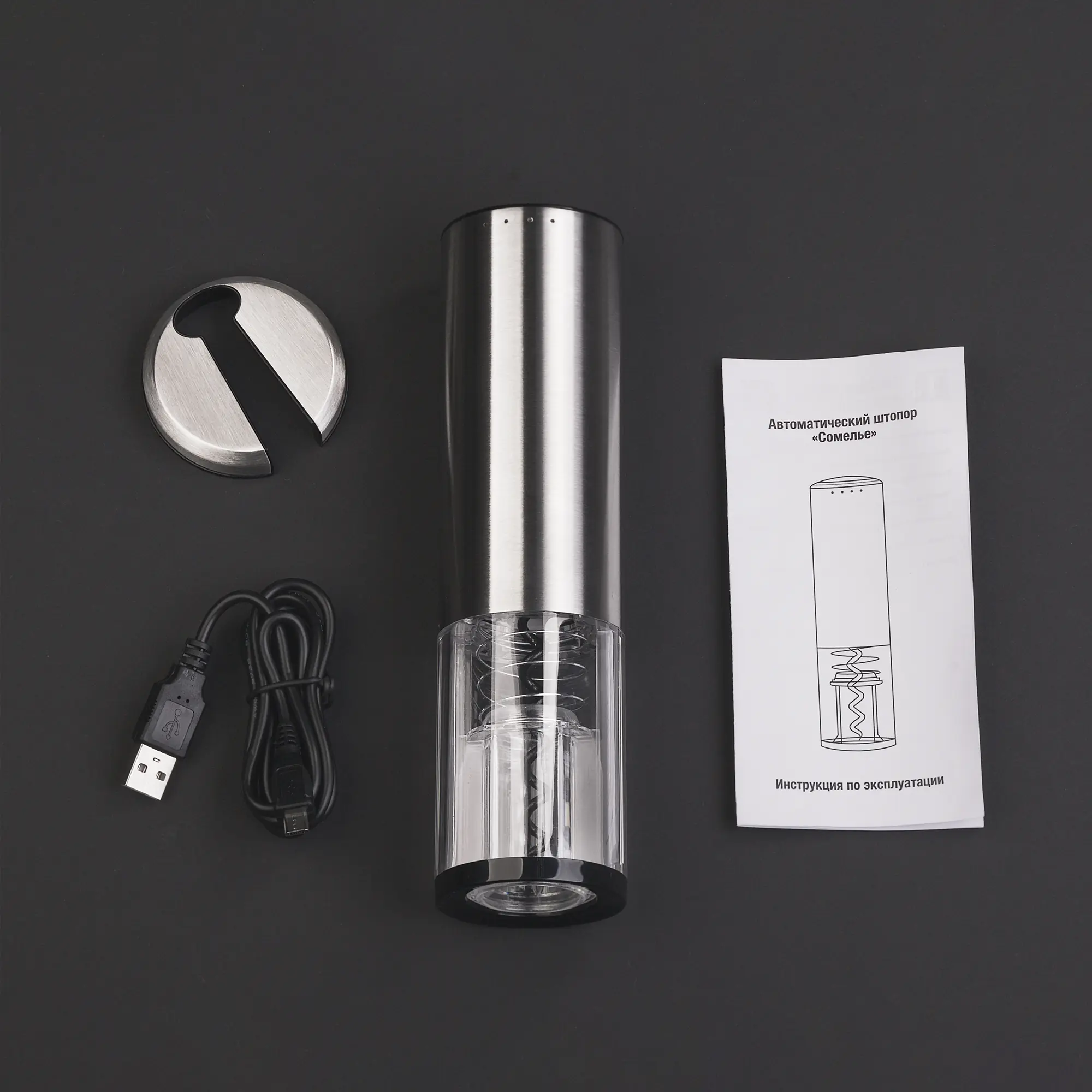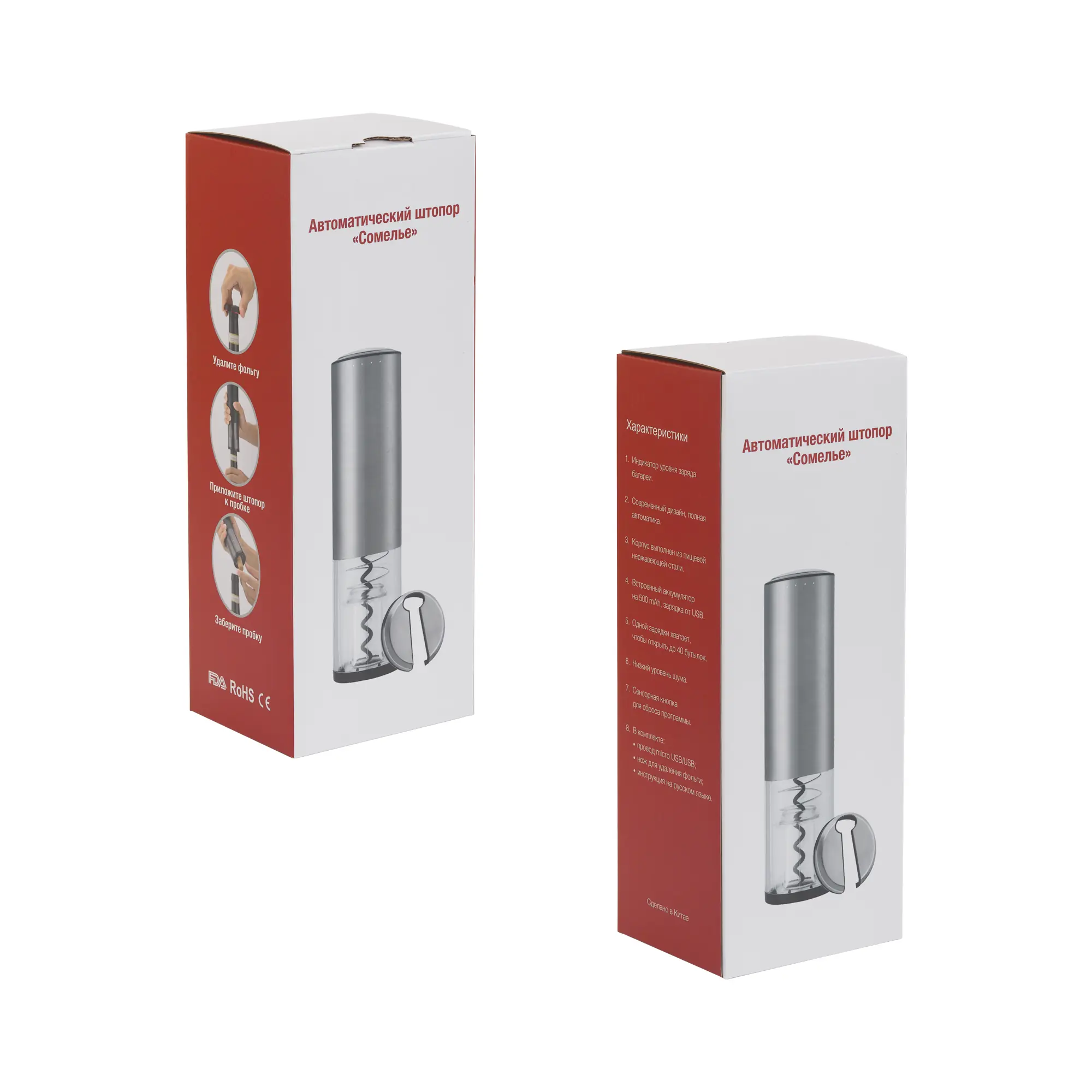 Штопор автоматический "Сомелье" с батареей, 500 mAh / серебристый