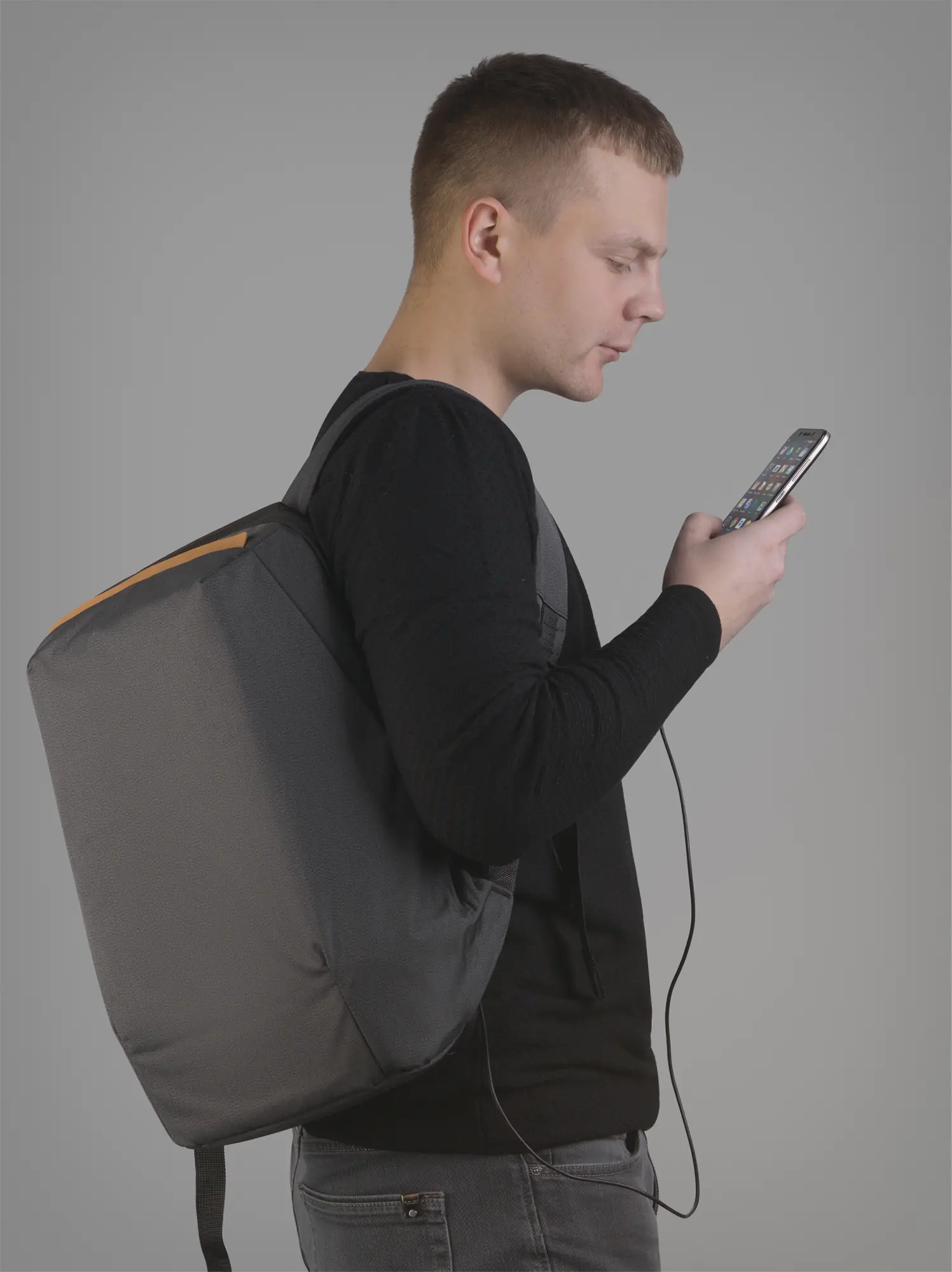Рюкзак "City" с USB-разъемом / черный с коричневым