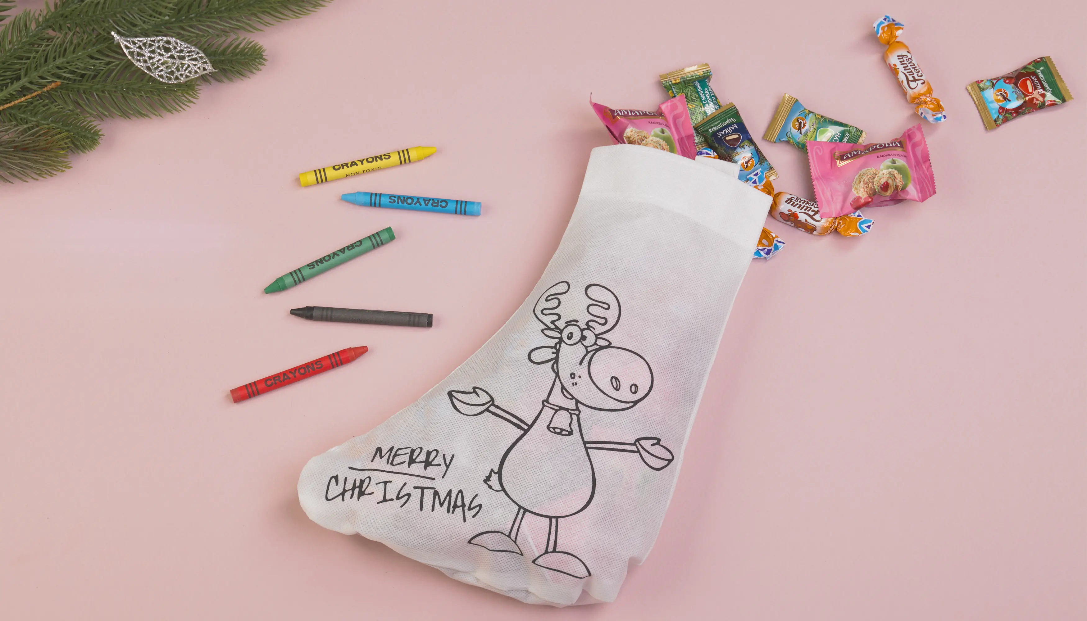 Мешок-раскраска "Merry christmas" с восковыми мелками / белый