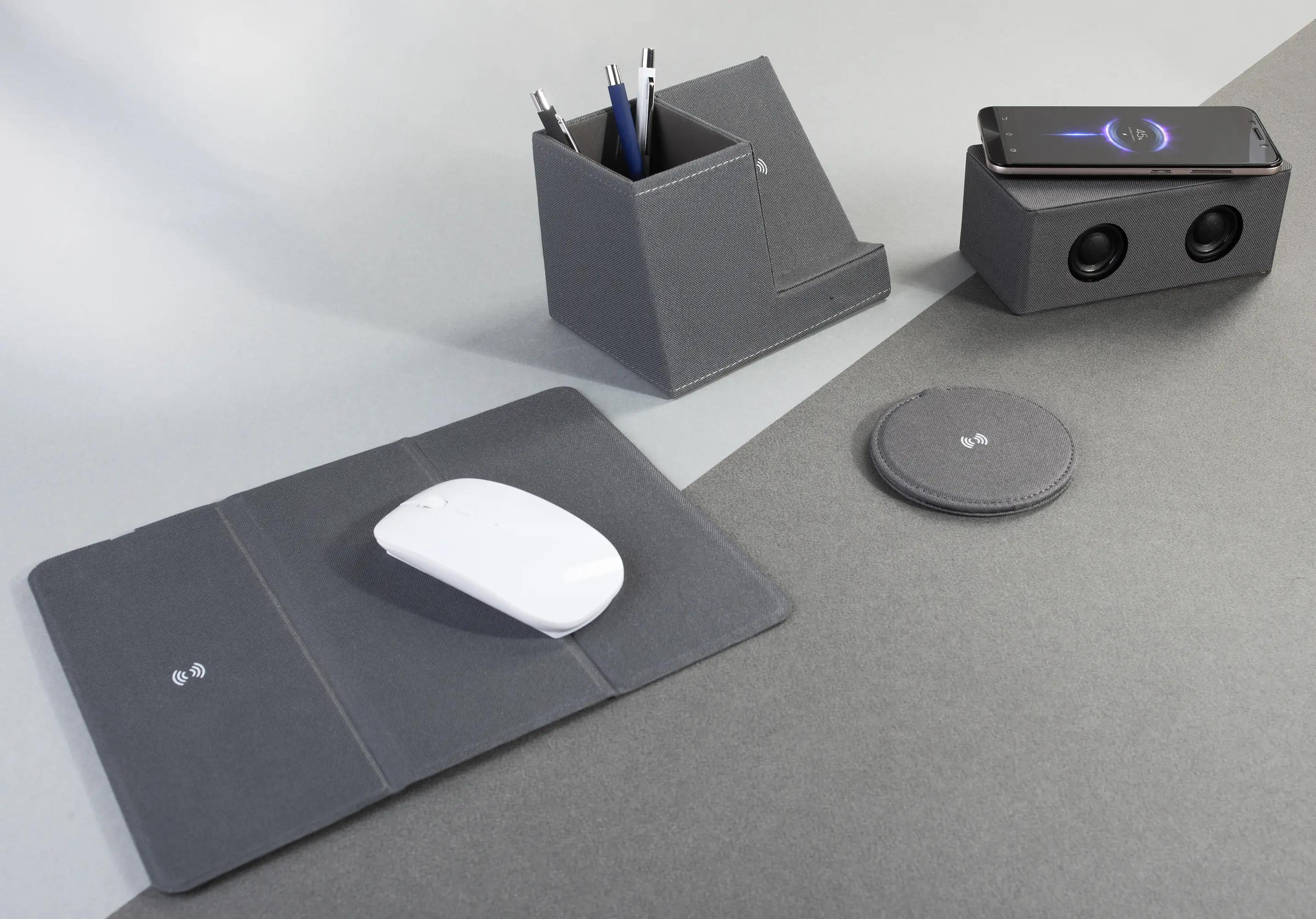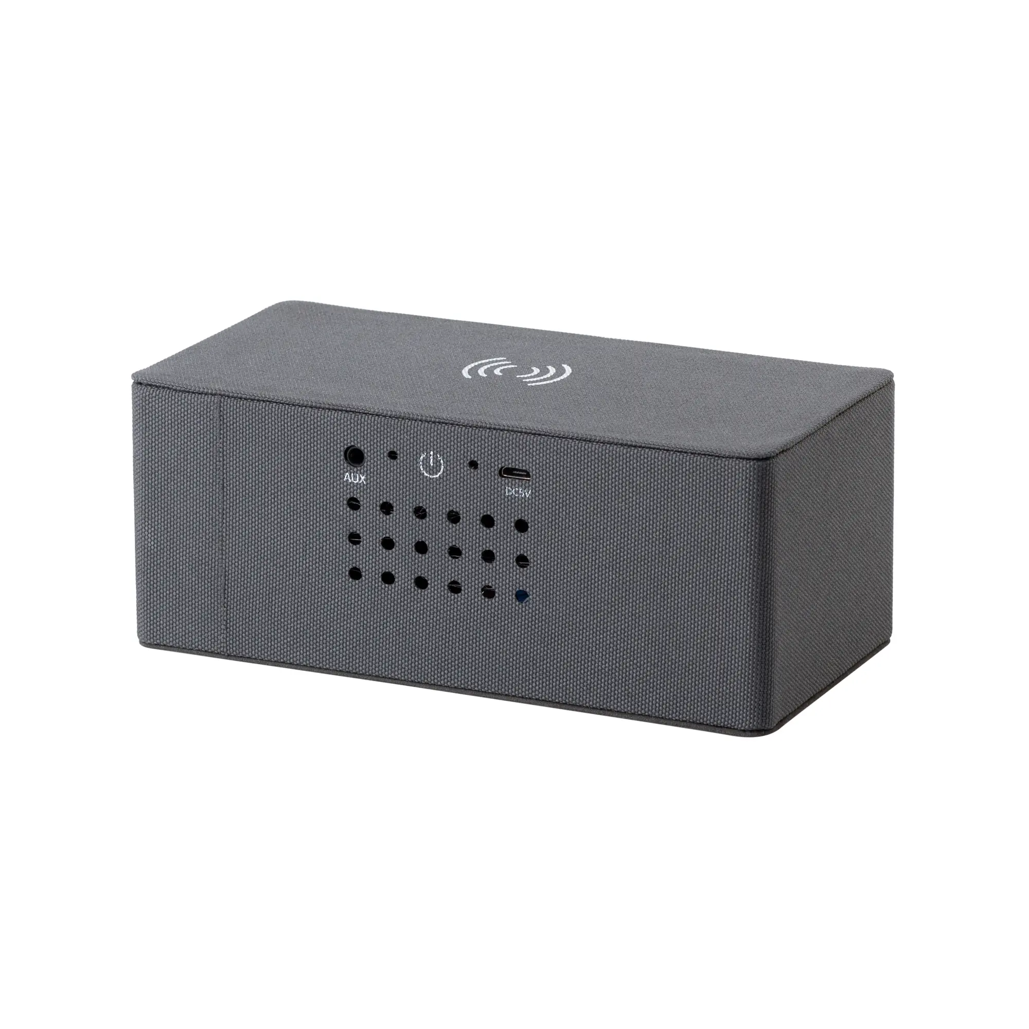 Bluetooth колонка "Cool Gray" с двумя динамиками (2х3Вт) и беспроводным зарядным устройством, переработанный пластик (RPET) / серый