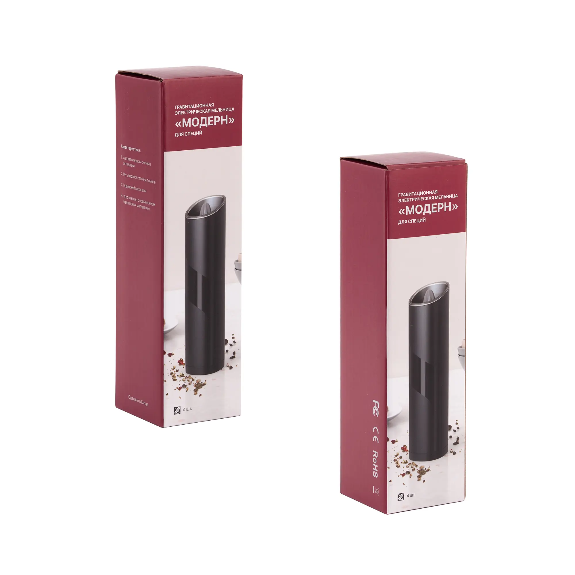 Гравитационная электрическая мельница "Модерн" для специй / черный