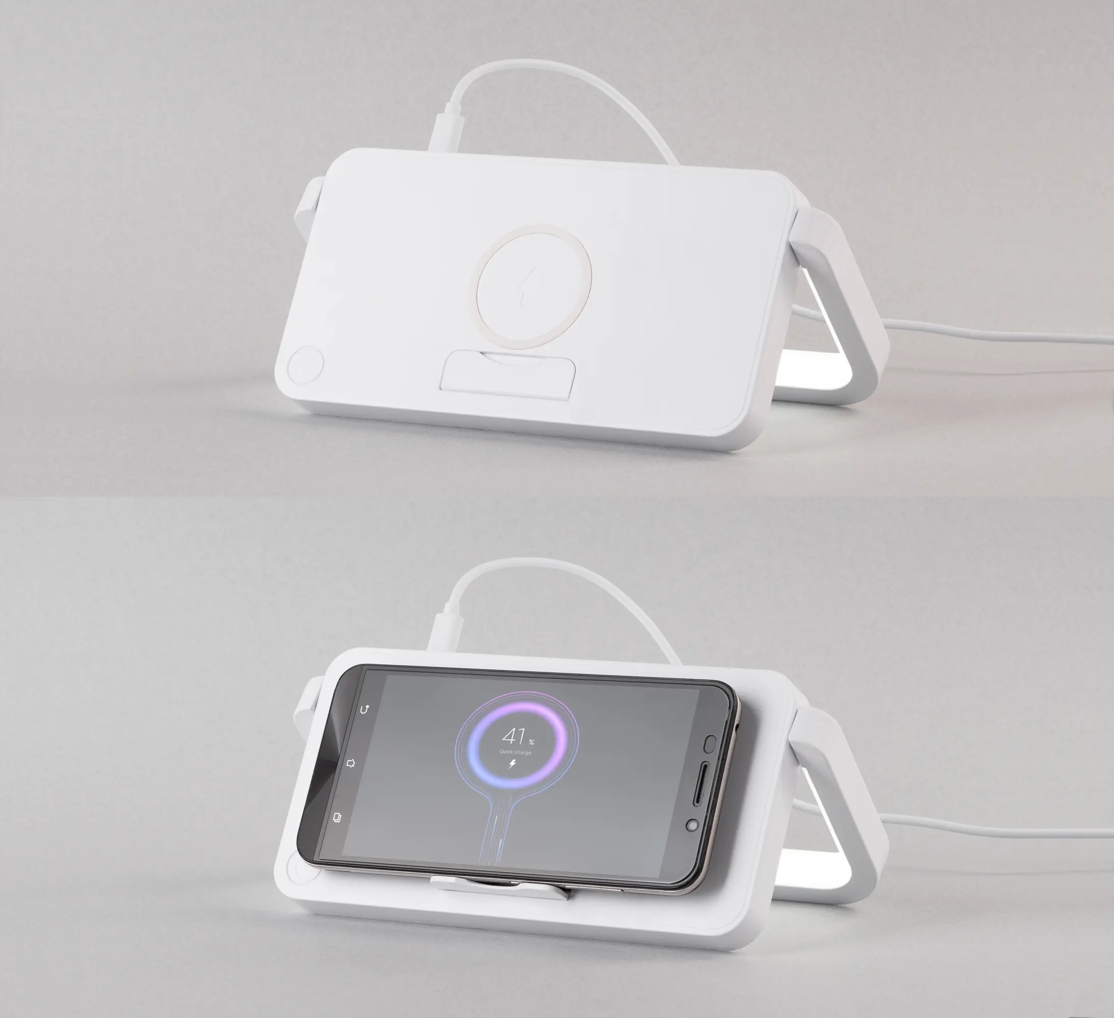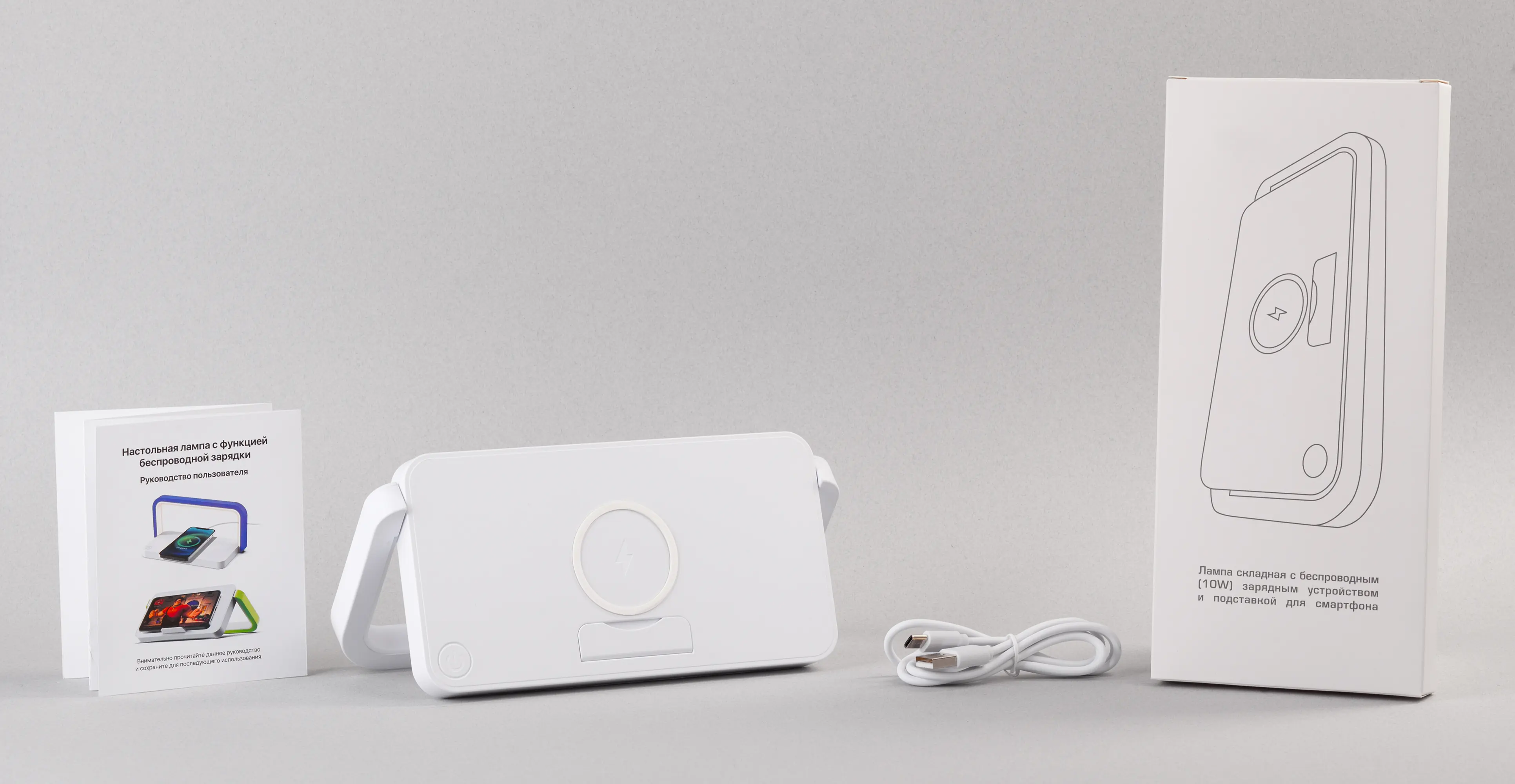 Лампа складная "Smart Light" с беспроводным (10W) зарядным устройством и подставкой для смартфона / белый