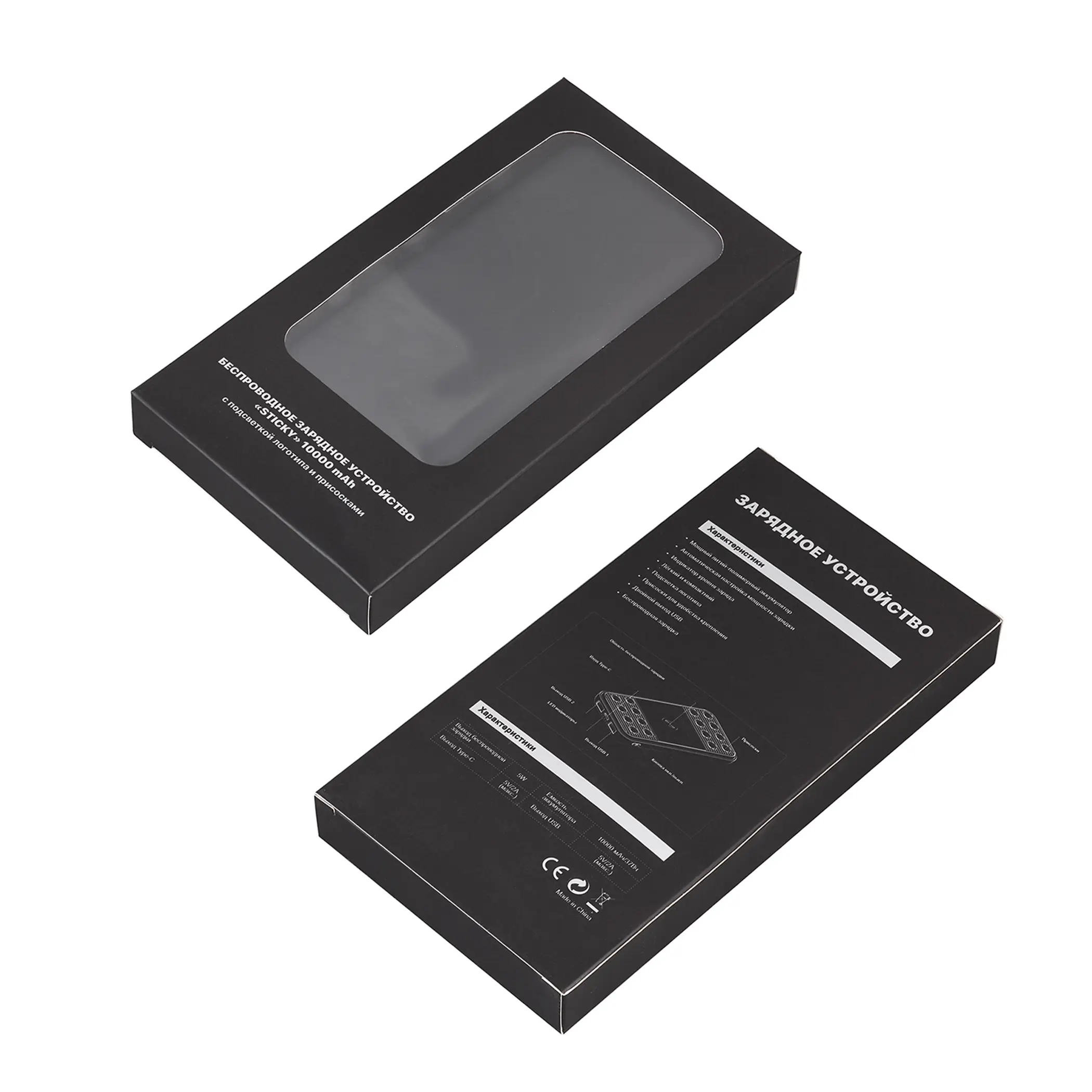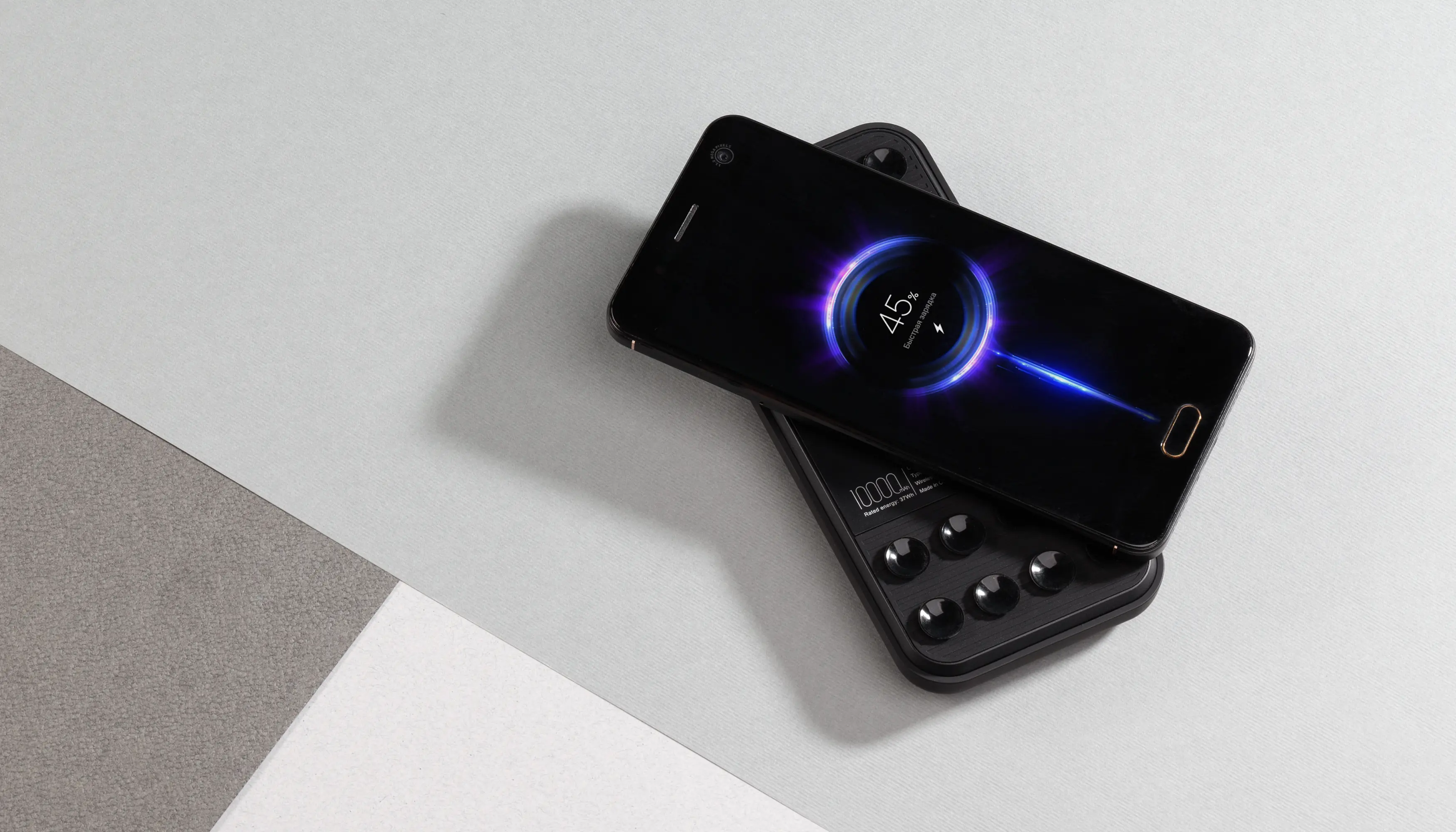 Беспроводное зарядное устройство "Sticky SOFTTOUCH", 10000 mAh с подсветкой логотипа и присосками / черный