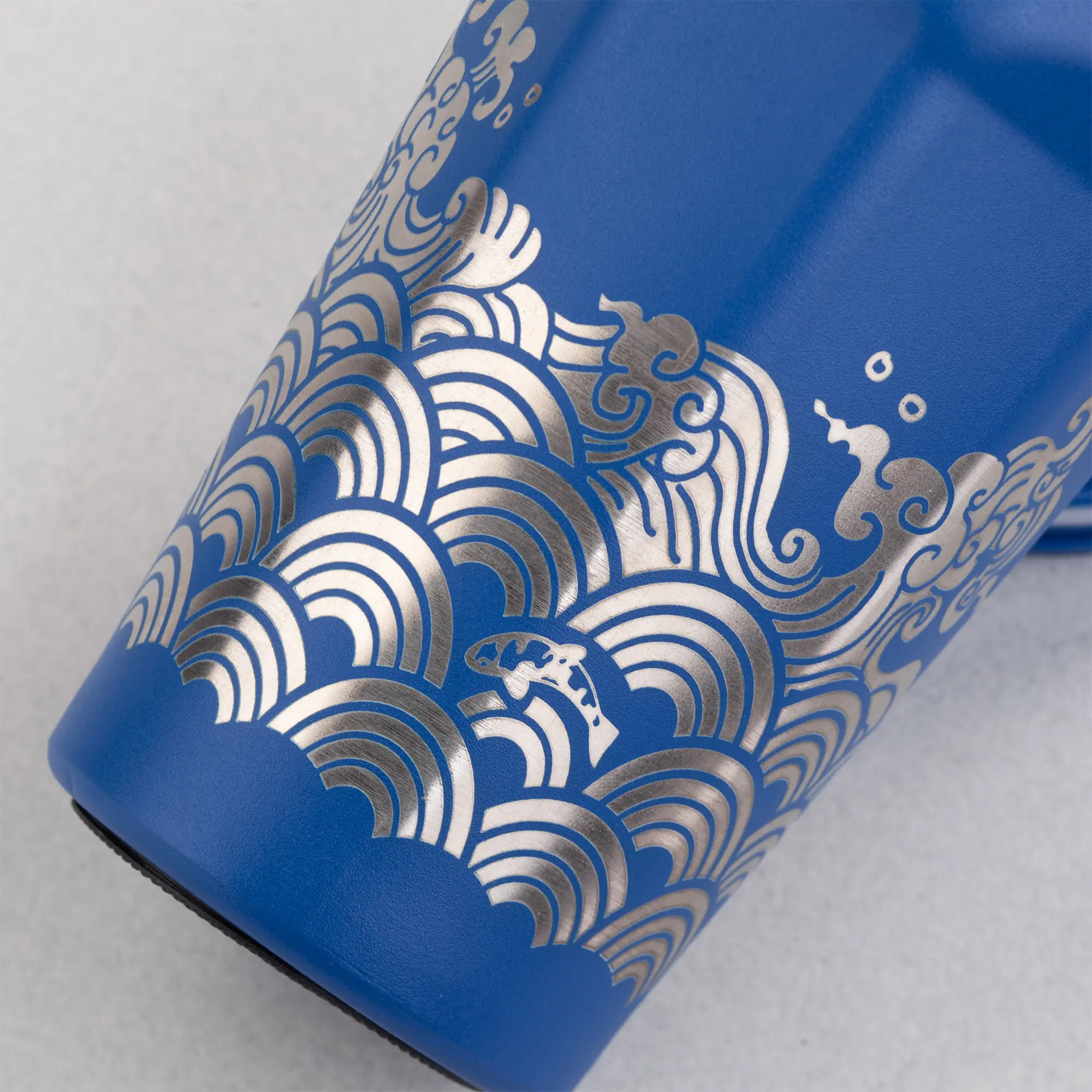 • Корпус стакана противоположная сторона от отверстия для питья L:Лазерная гравировка газовым лазером на неметаллической поверхности, Р: Тампопечать