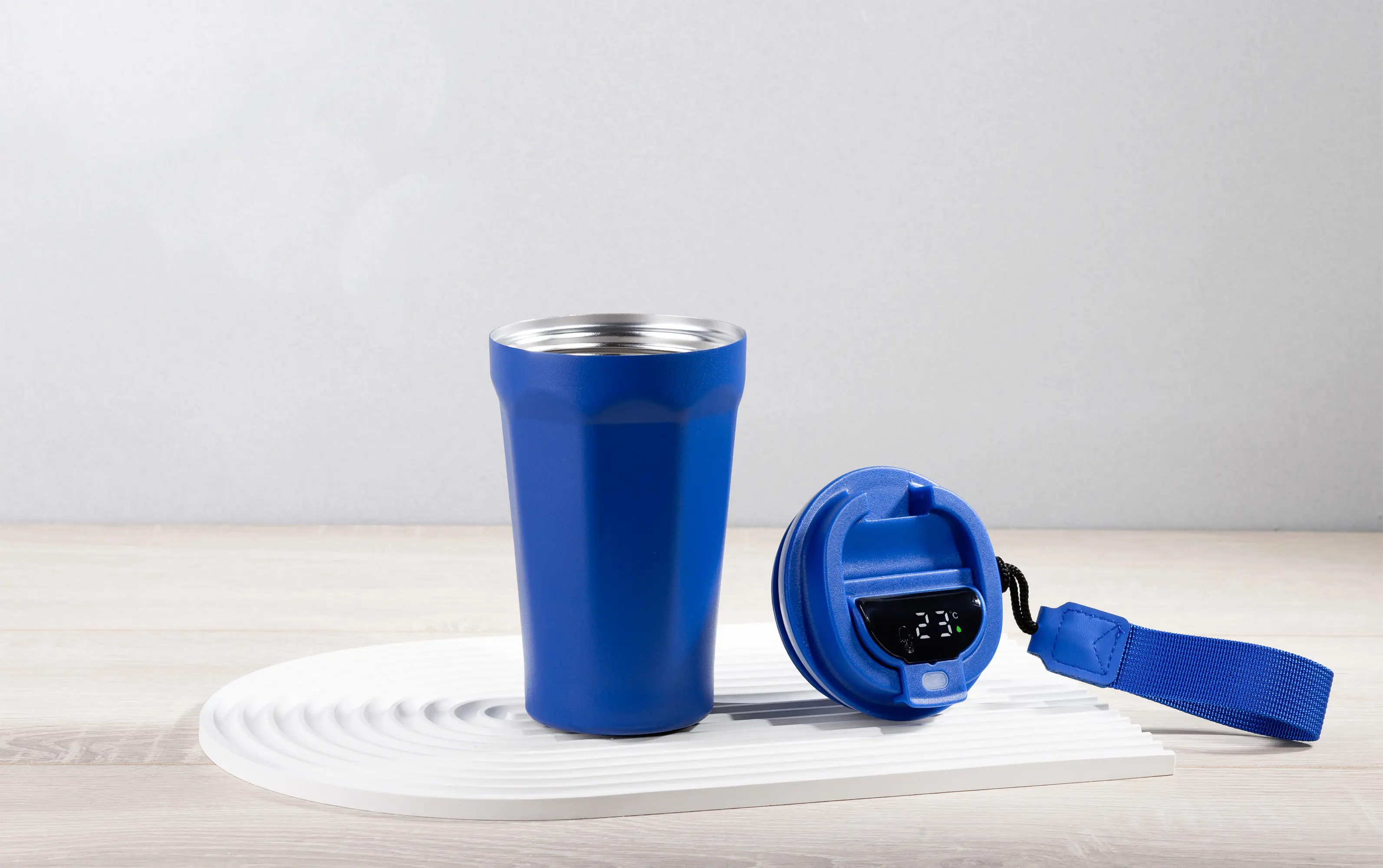 Термостакан "Legend_Волны" 390 мл с индикацией температуры, покрытие пудра / синий