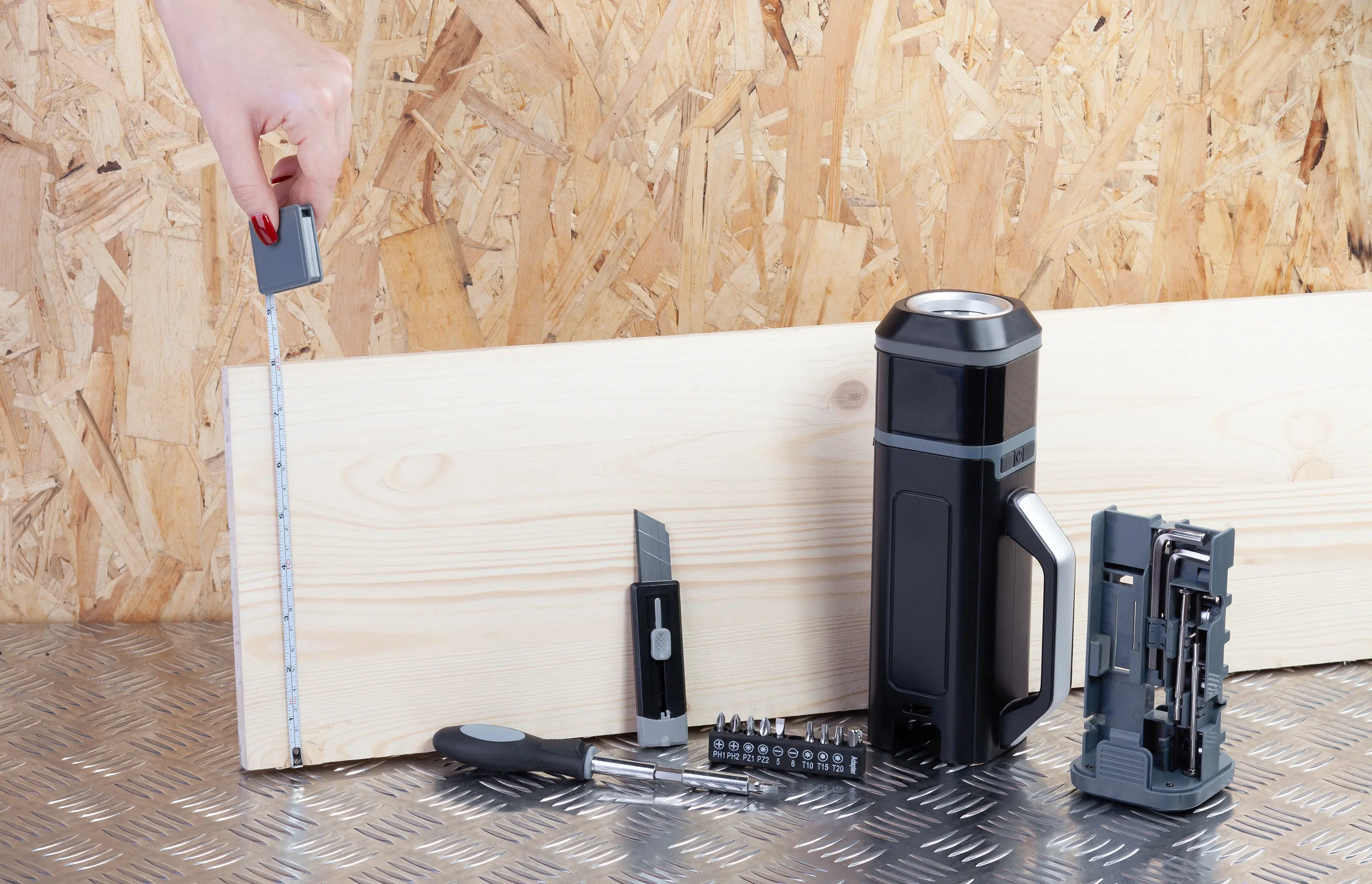 Набор инструментов "Expert" с фонарем / черный с серым