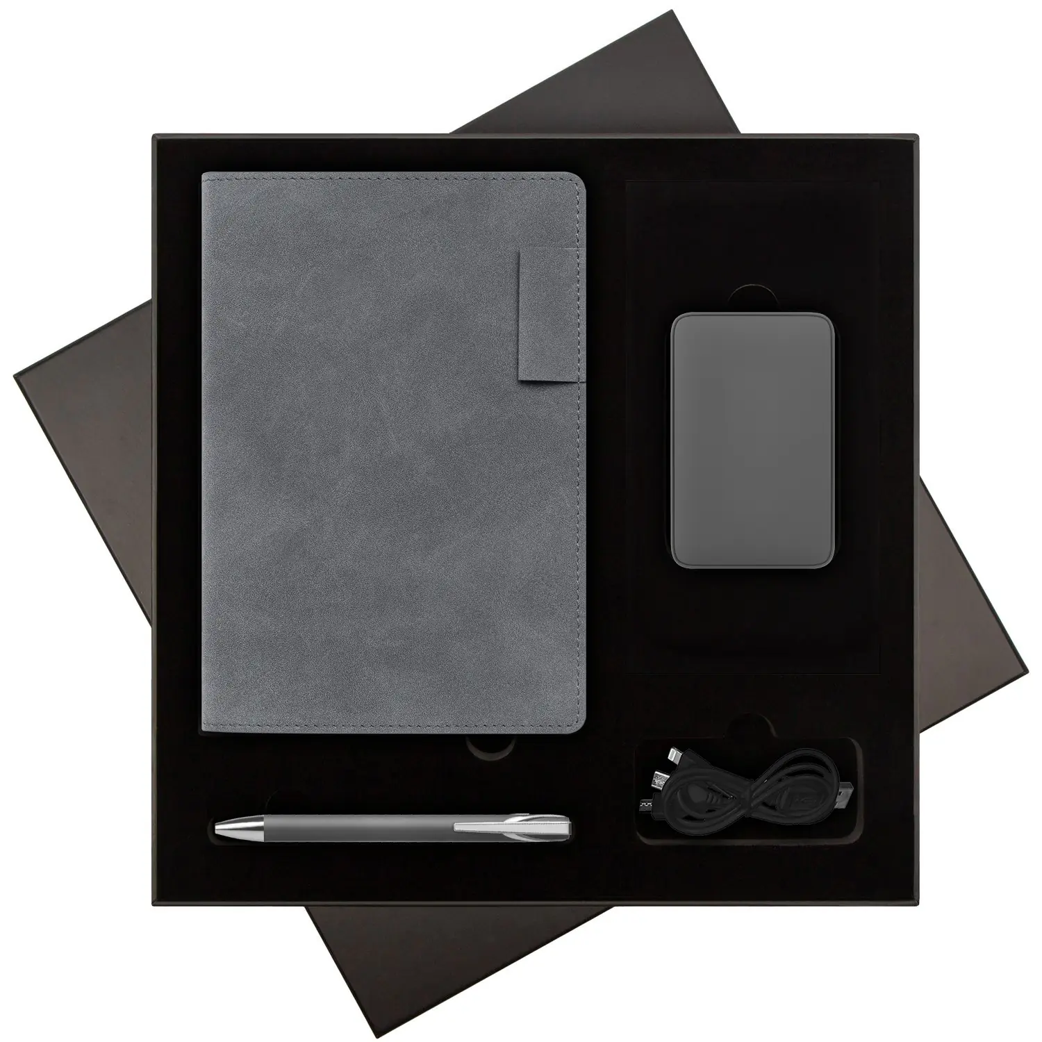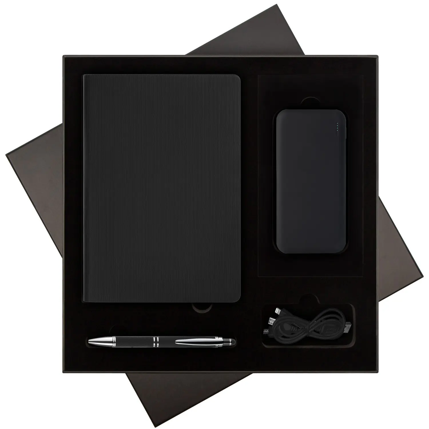 Подарочная коробка с ложементом для ежедневника, ручки и аккумулятора, черная (под съемные ложементы)